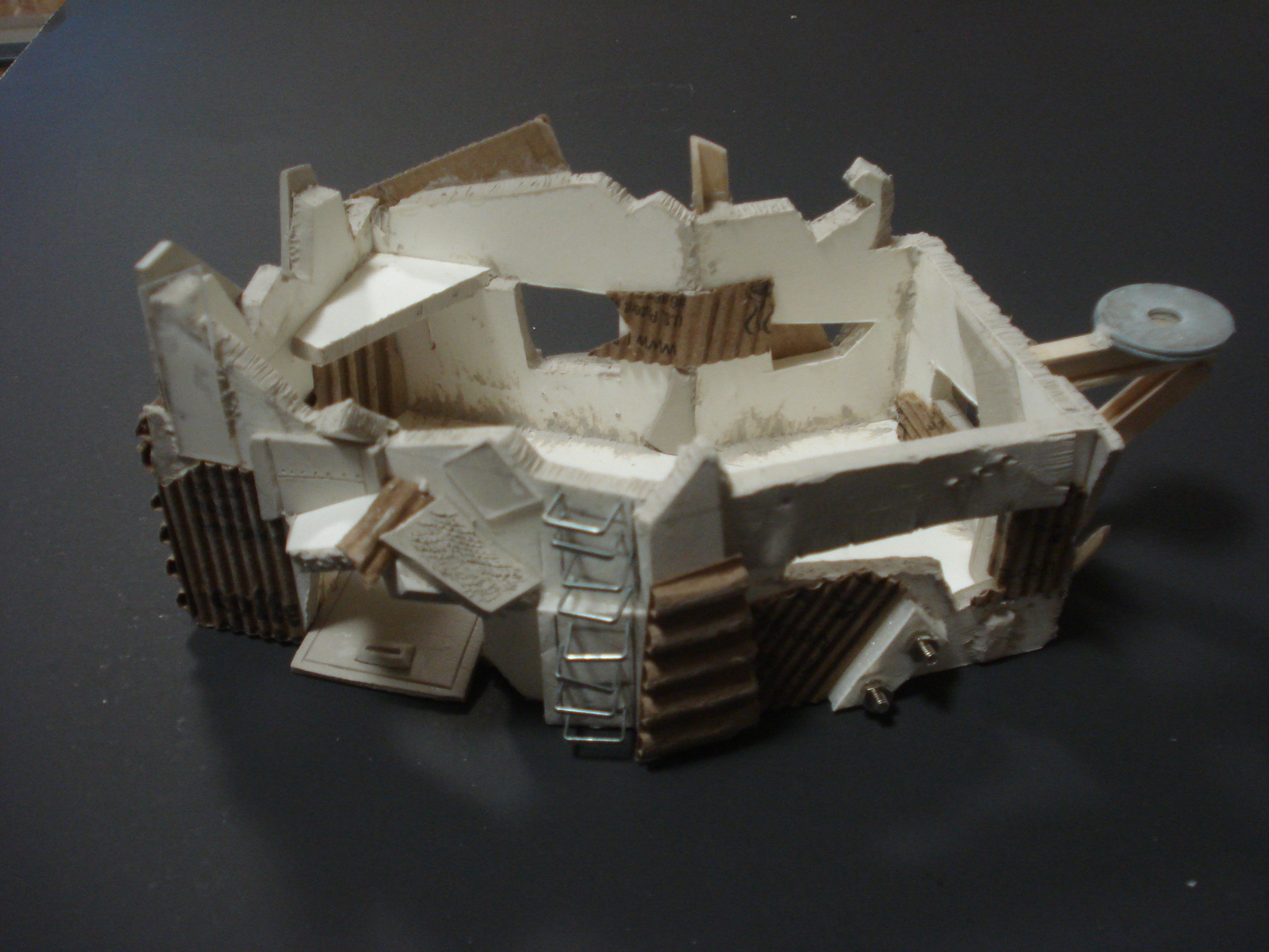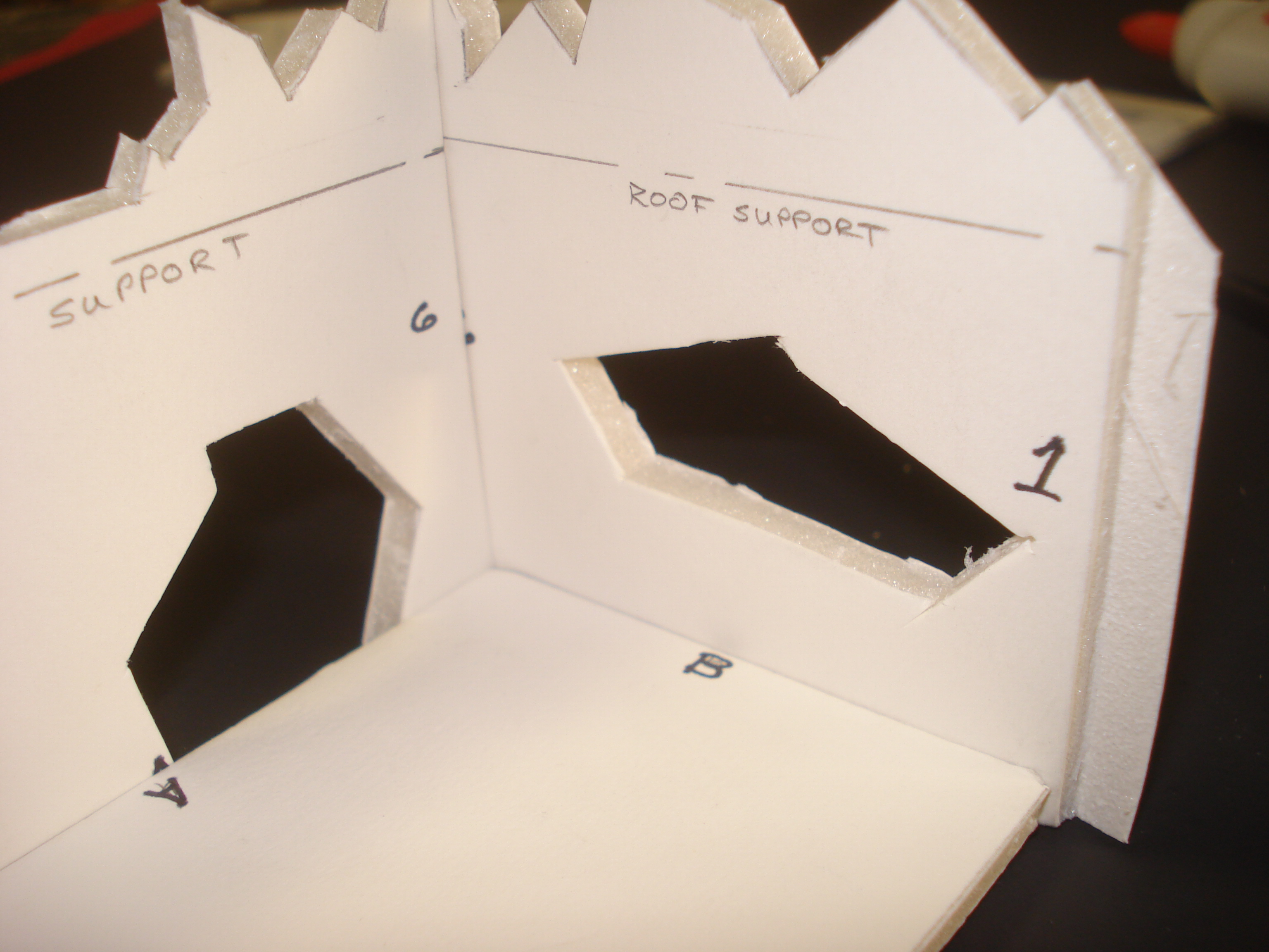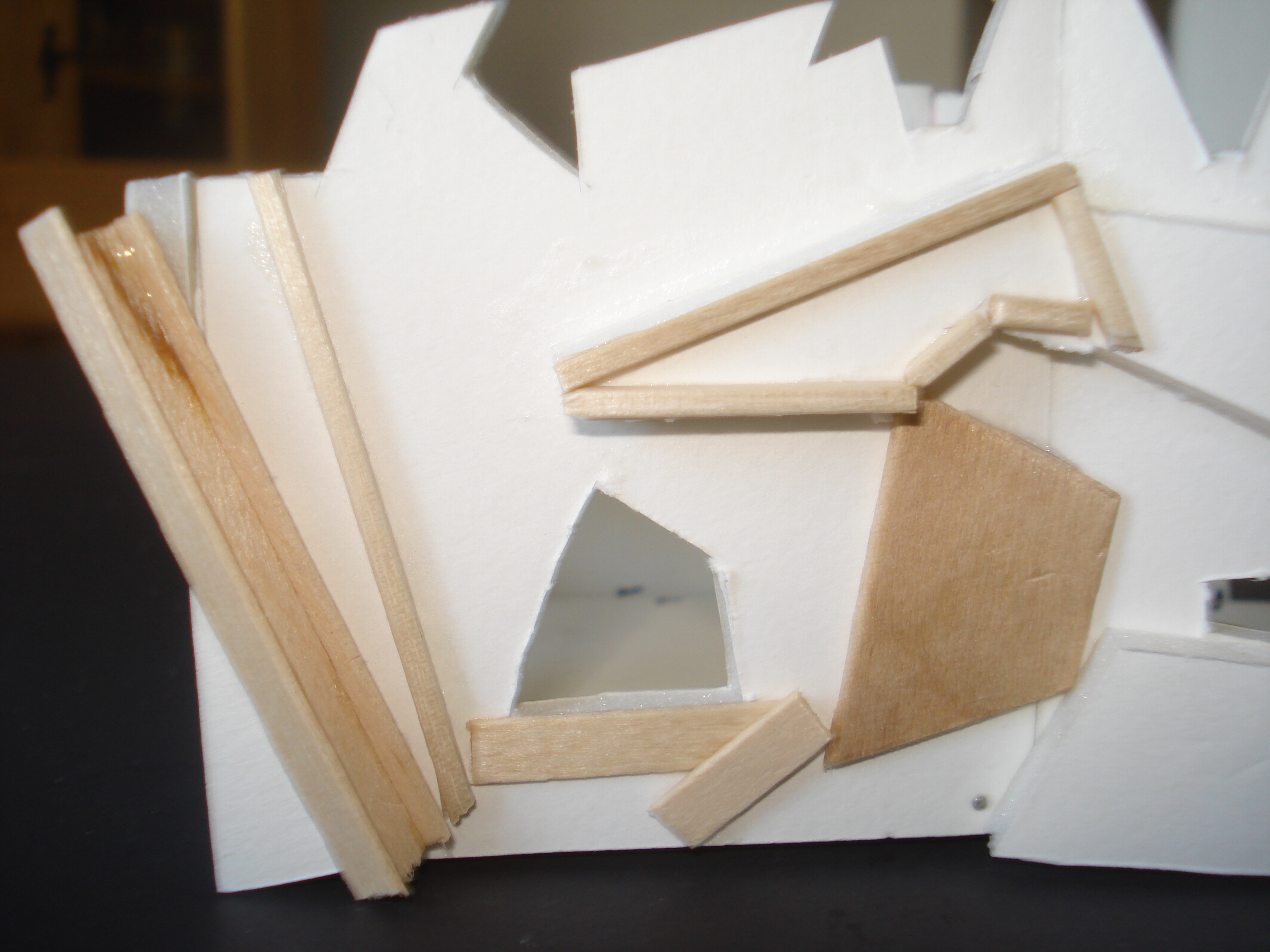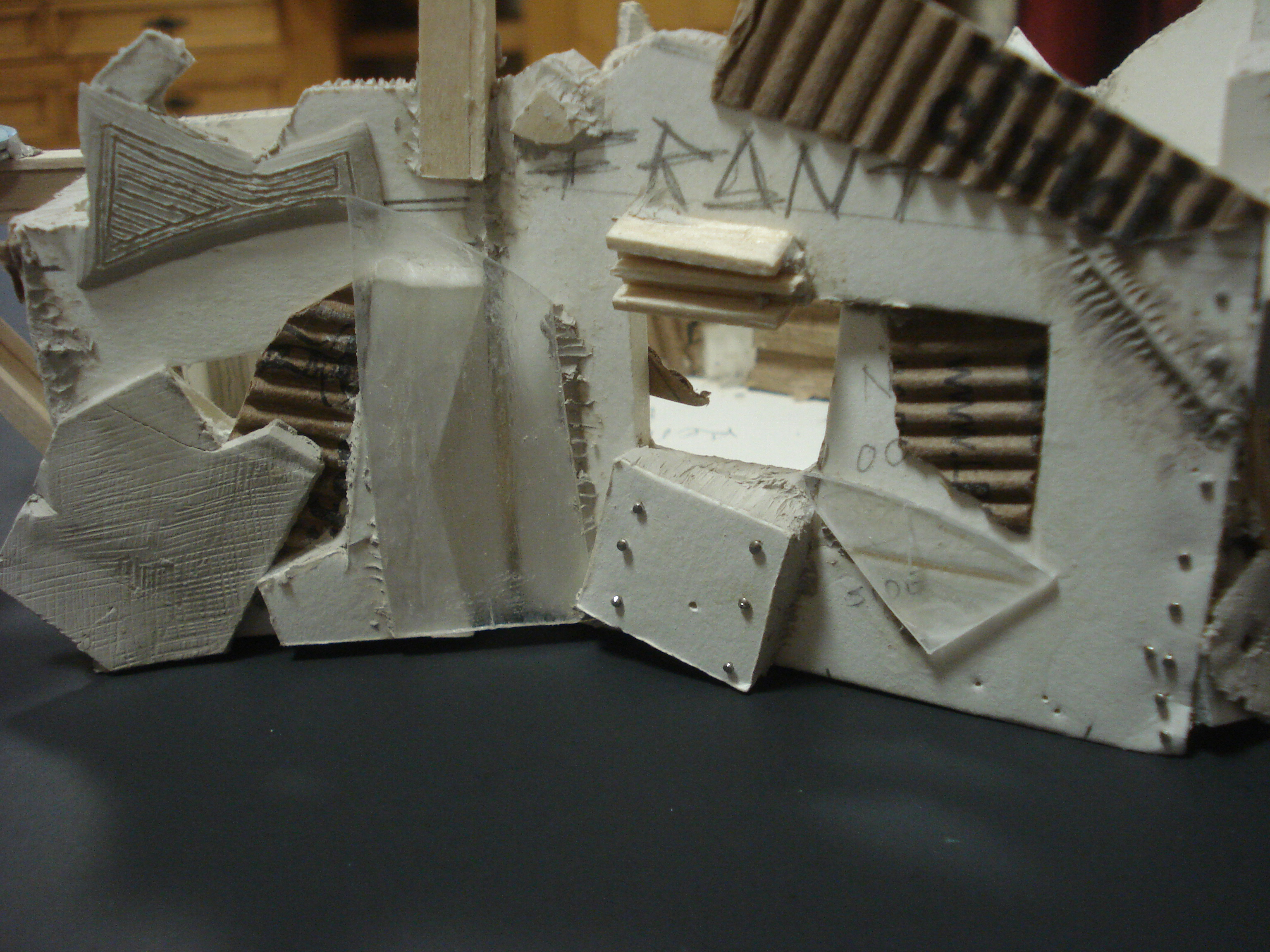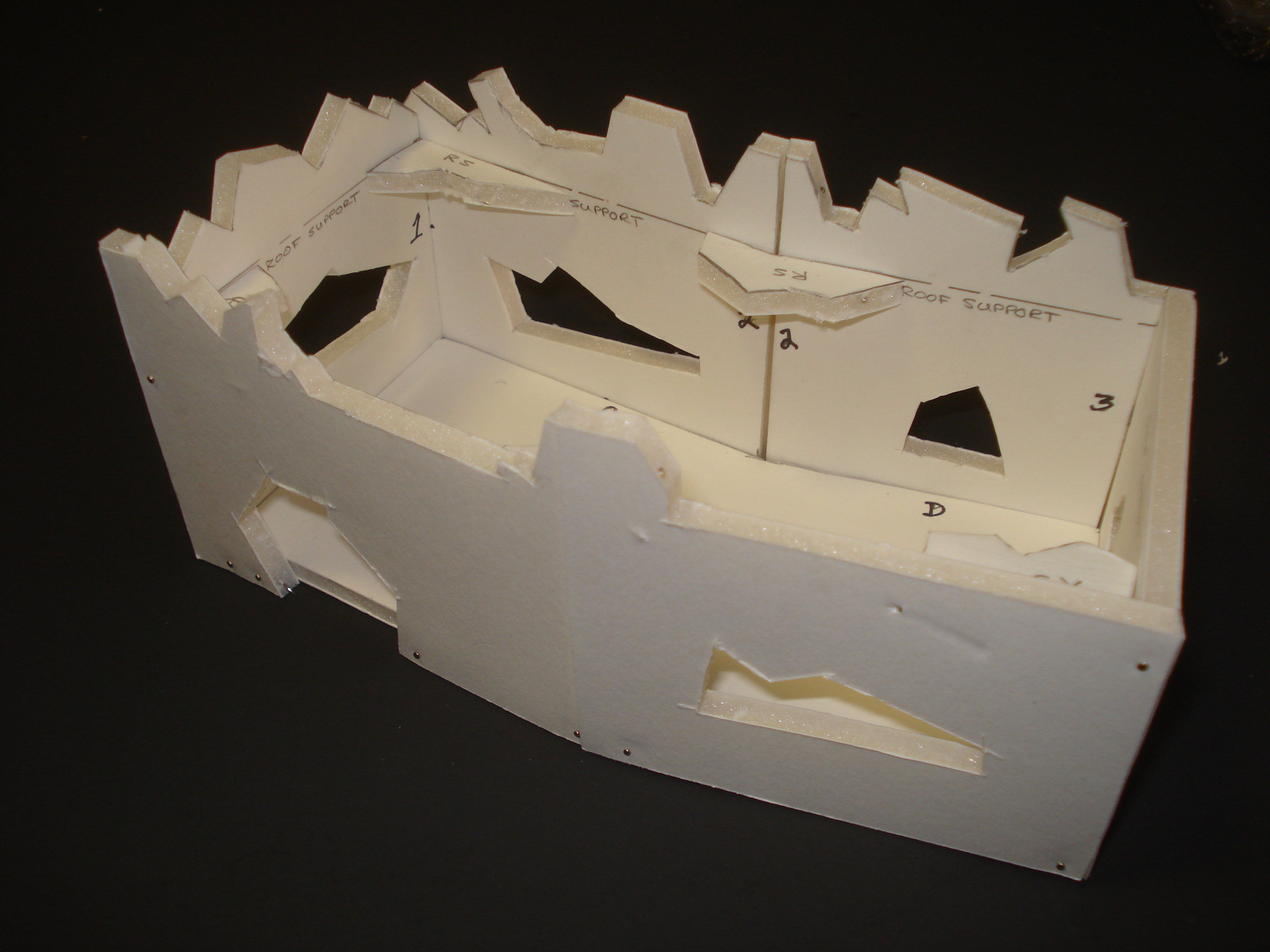 Here you can see that I have really detailed out the structure, adding bits of plastic from CD cases, foam core bits from previous cuts and some card board.