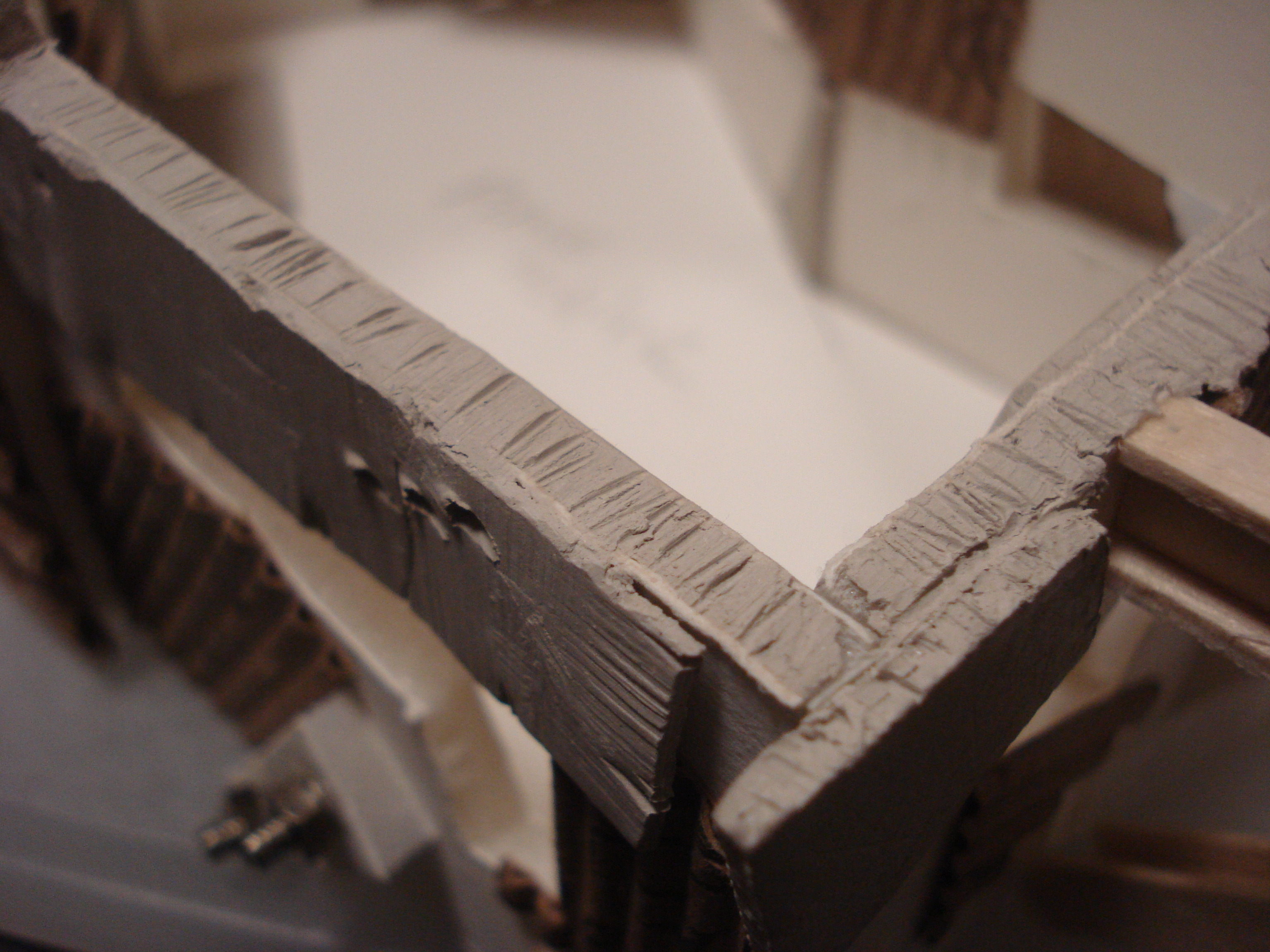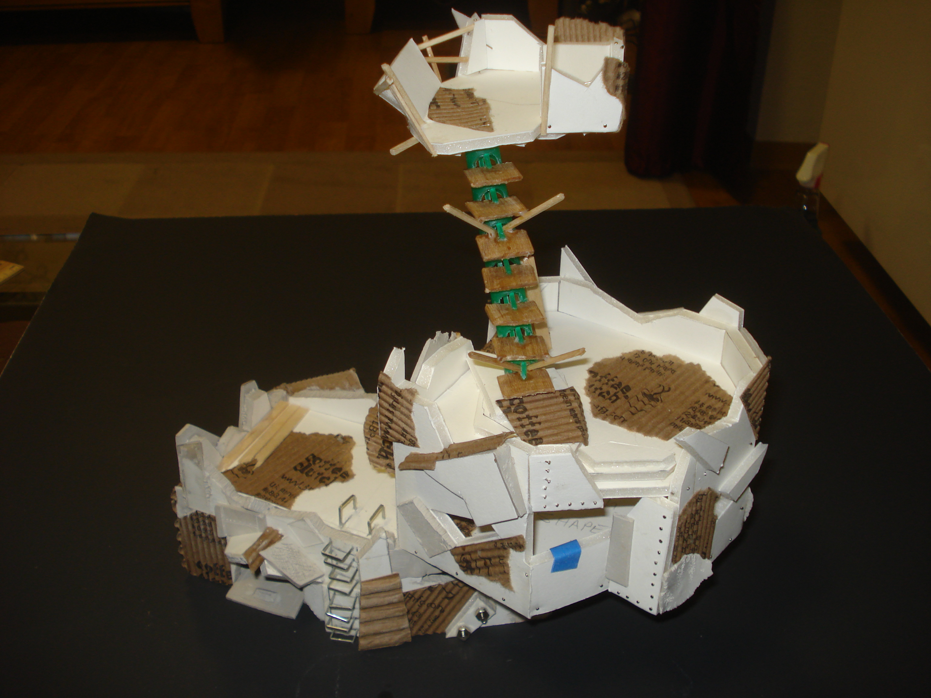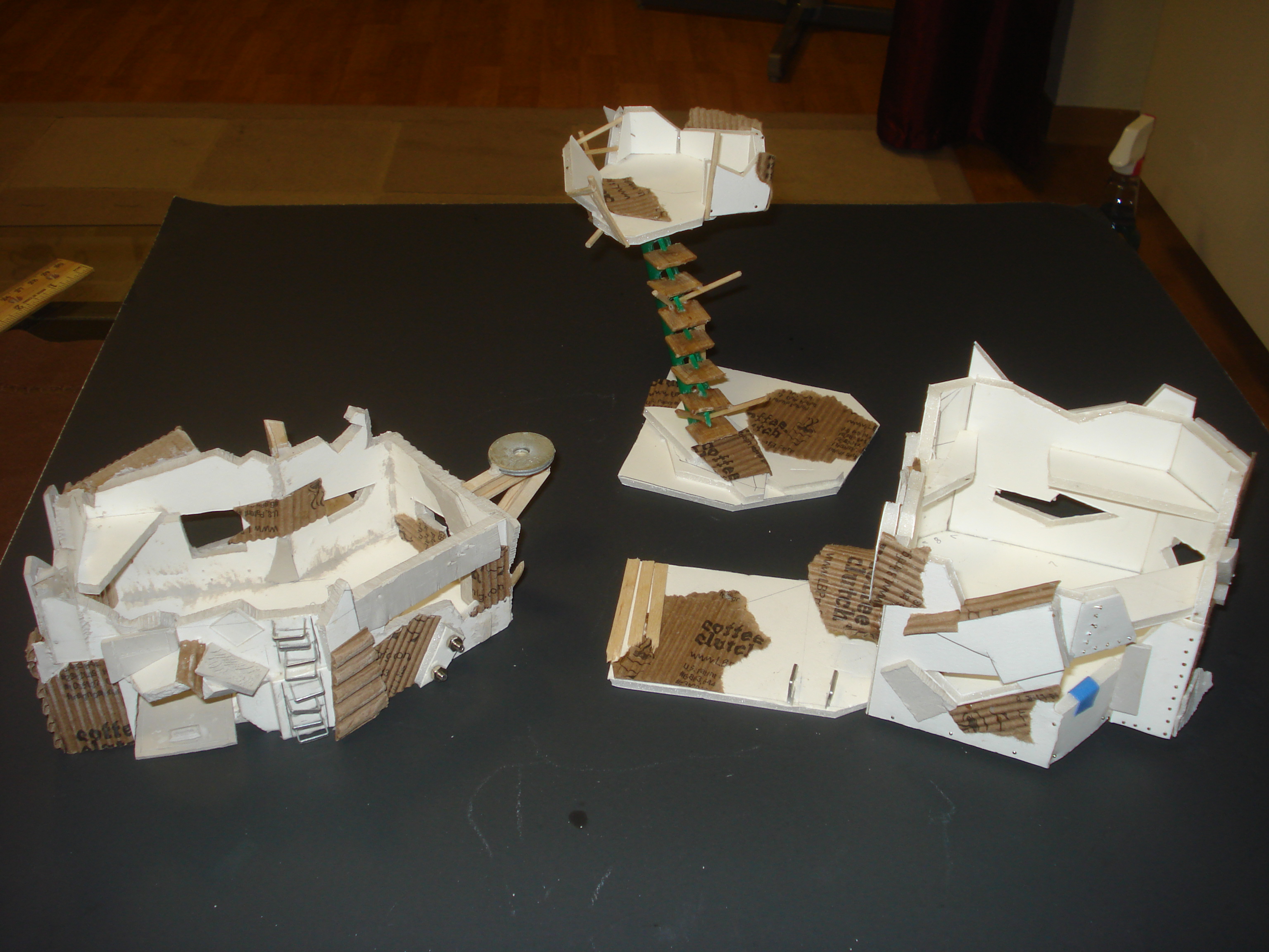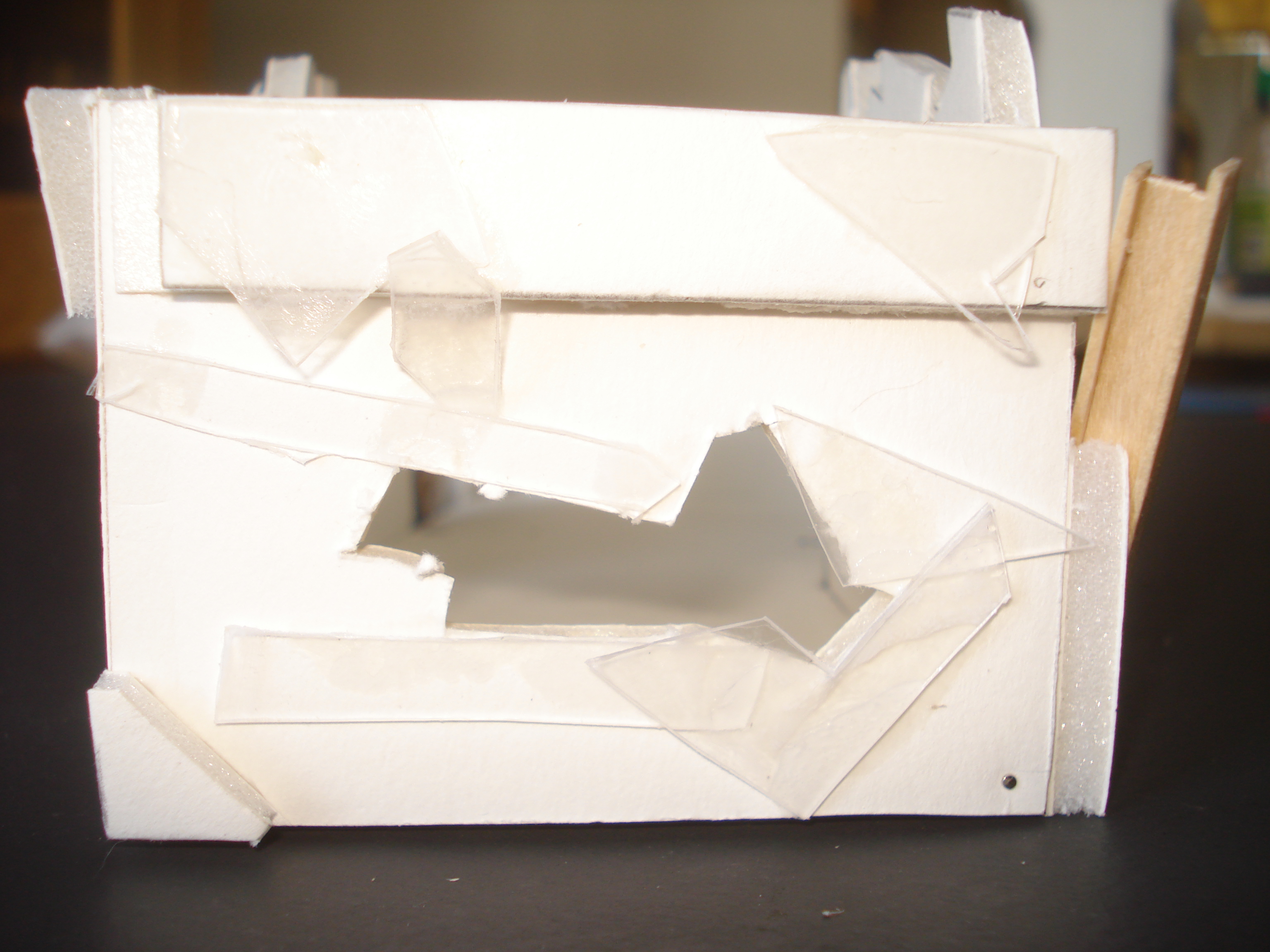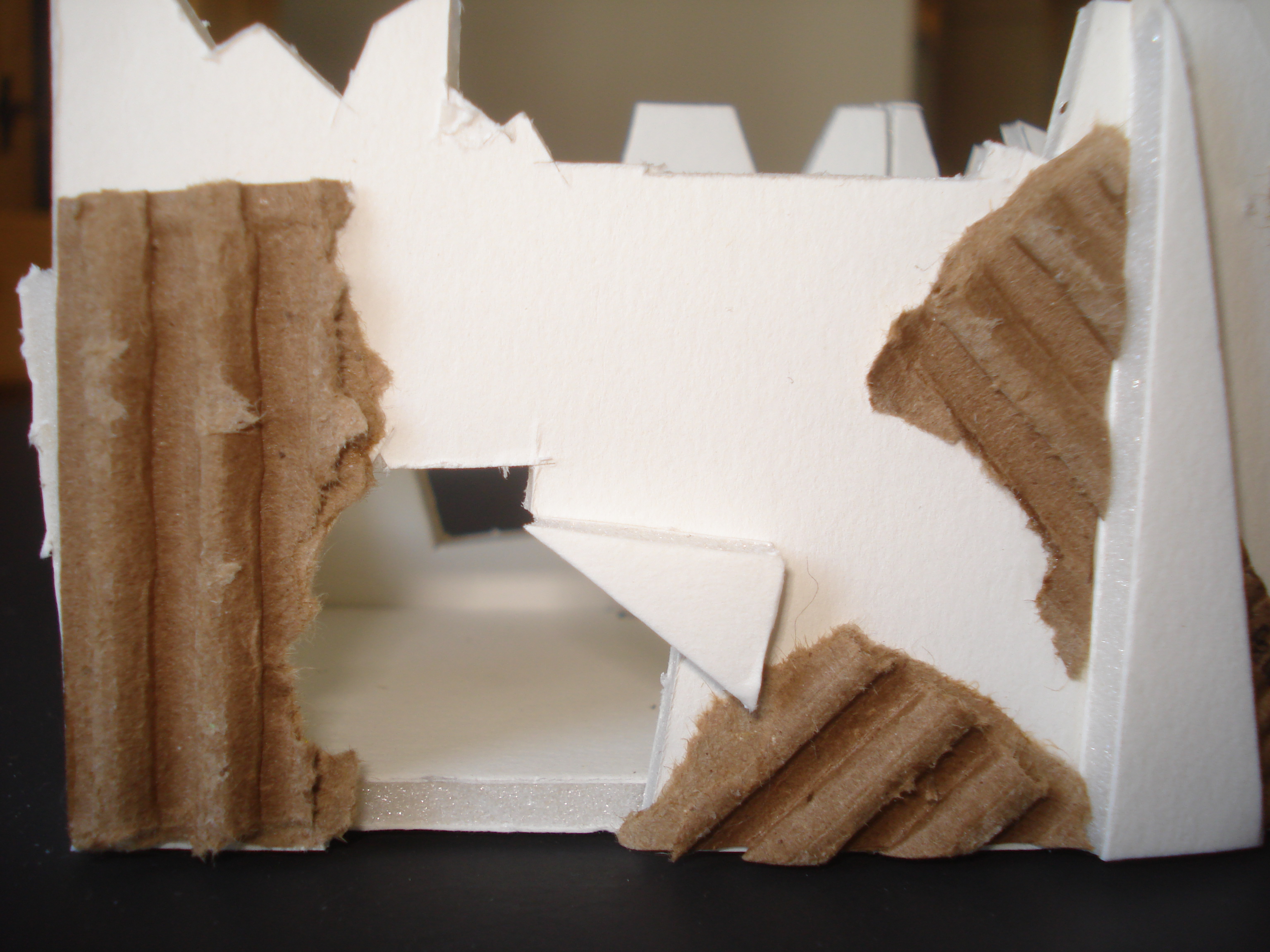 Here you can see that I have really detailed out the structure, adding bits of plastic from CD cases, foam core bits from previous cuts and some card board.