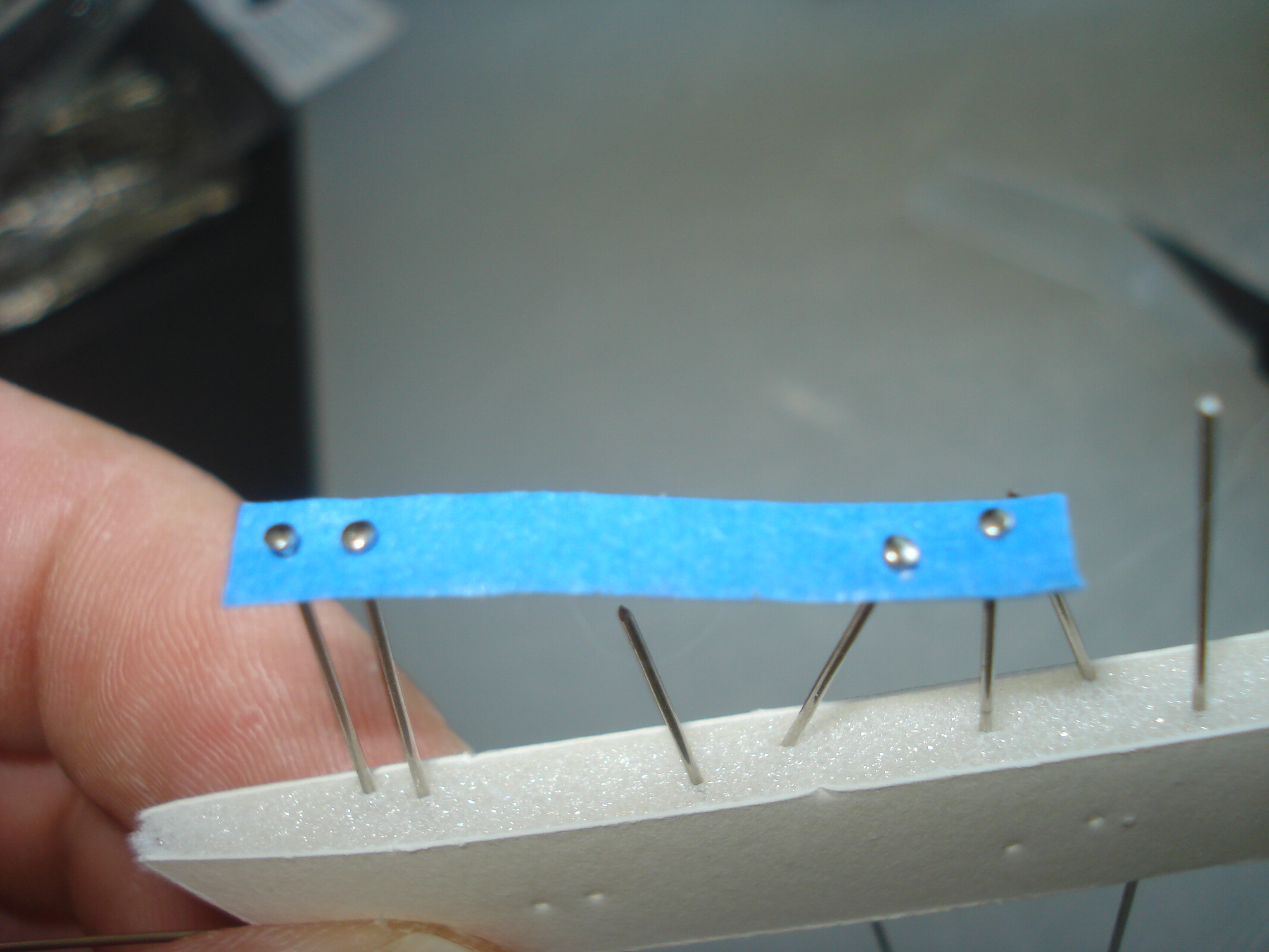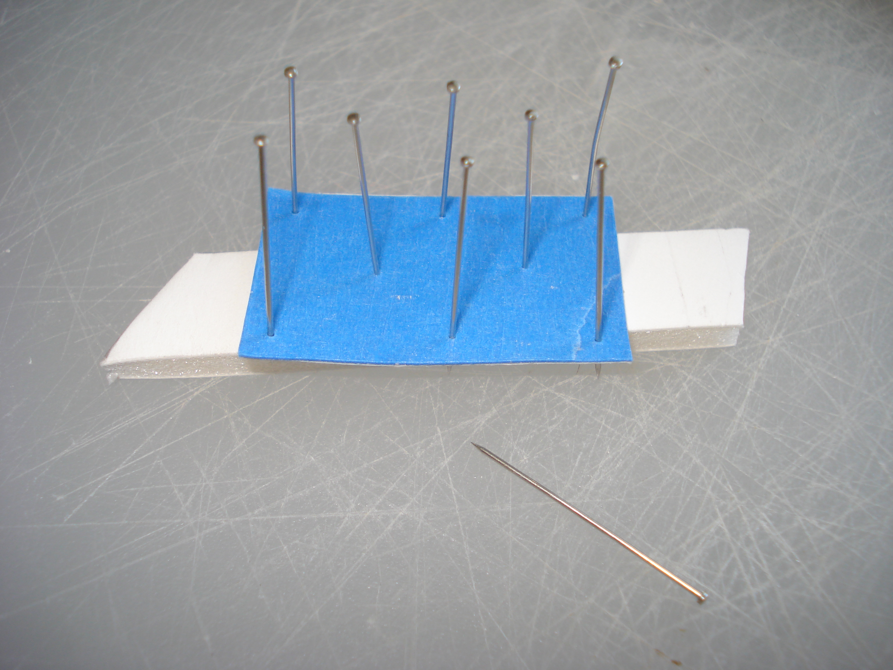 This prevents having to seal all the foam, and give a firm area to pin from along the edge. Note on the pins, if you do not hide them, you can paint them later to look like rivets. On this section, you will glue the floor edge and the edge that sits into the tongued edge.