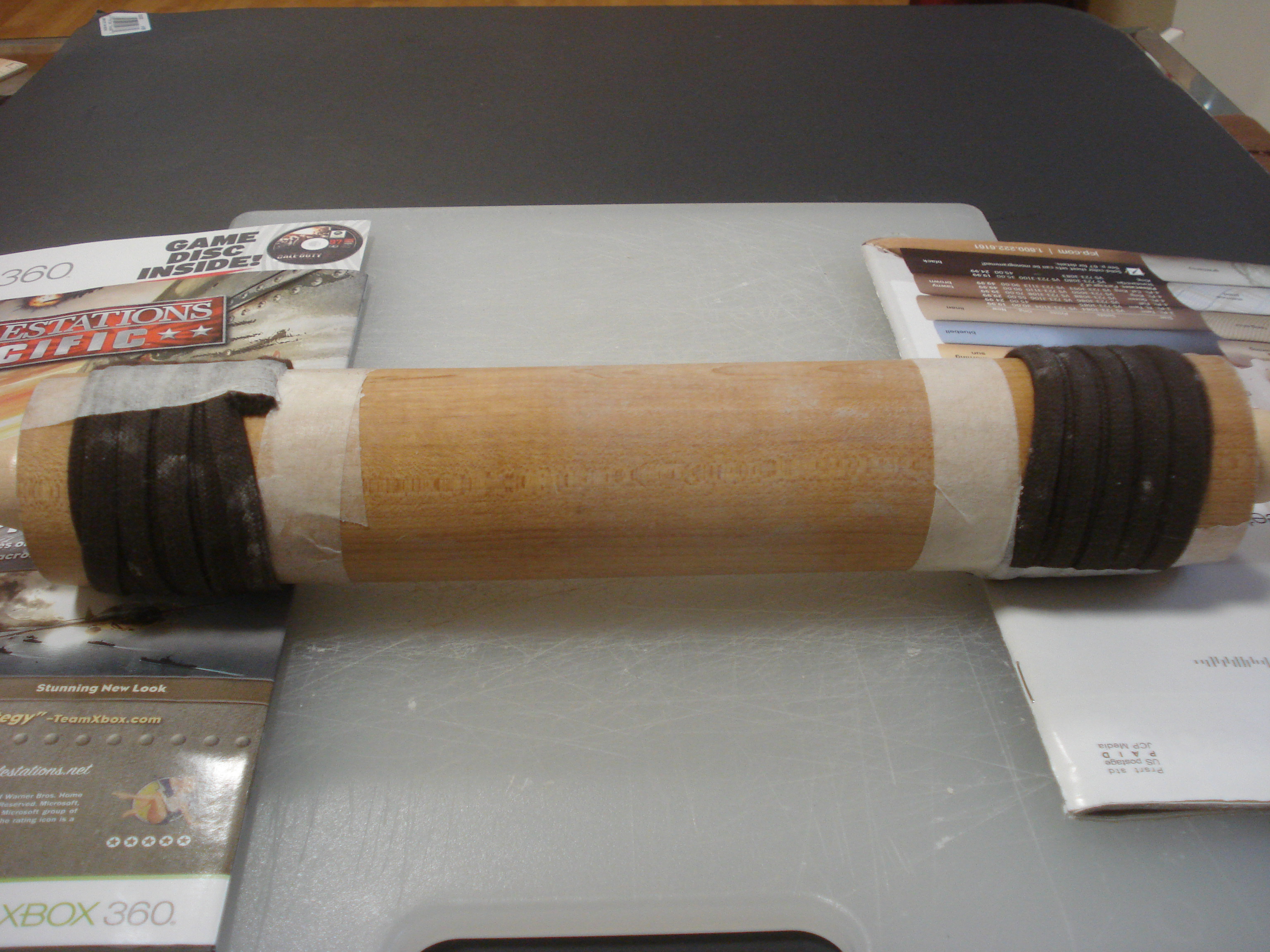 After the prep, I tied some shoestrings around a rolling pin, this will limit how high the roller will sit off my table, and how thick the clay will end up being.