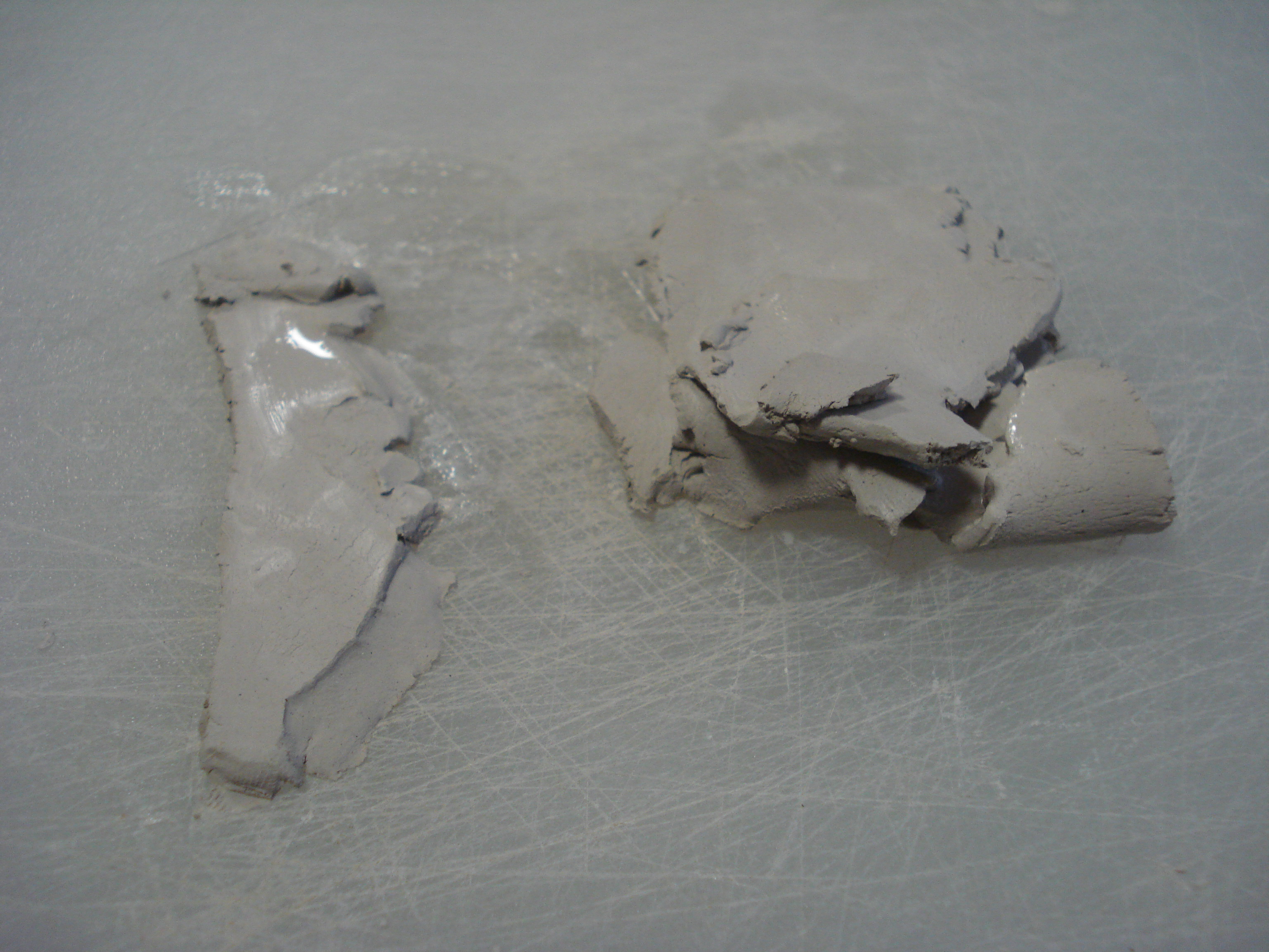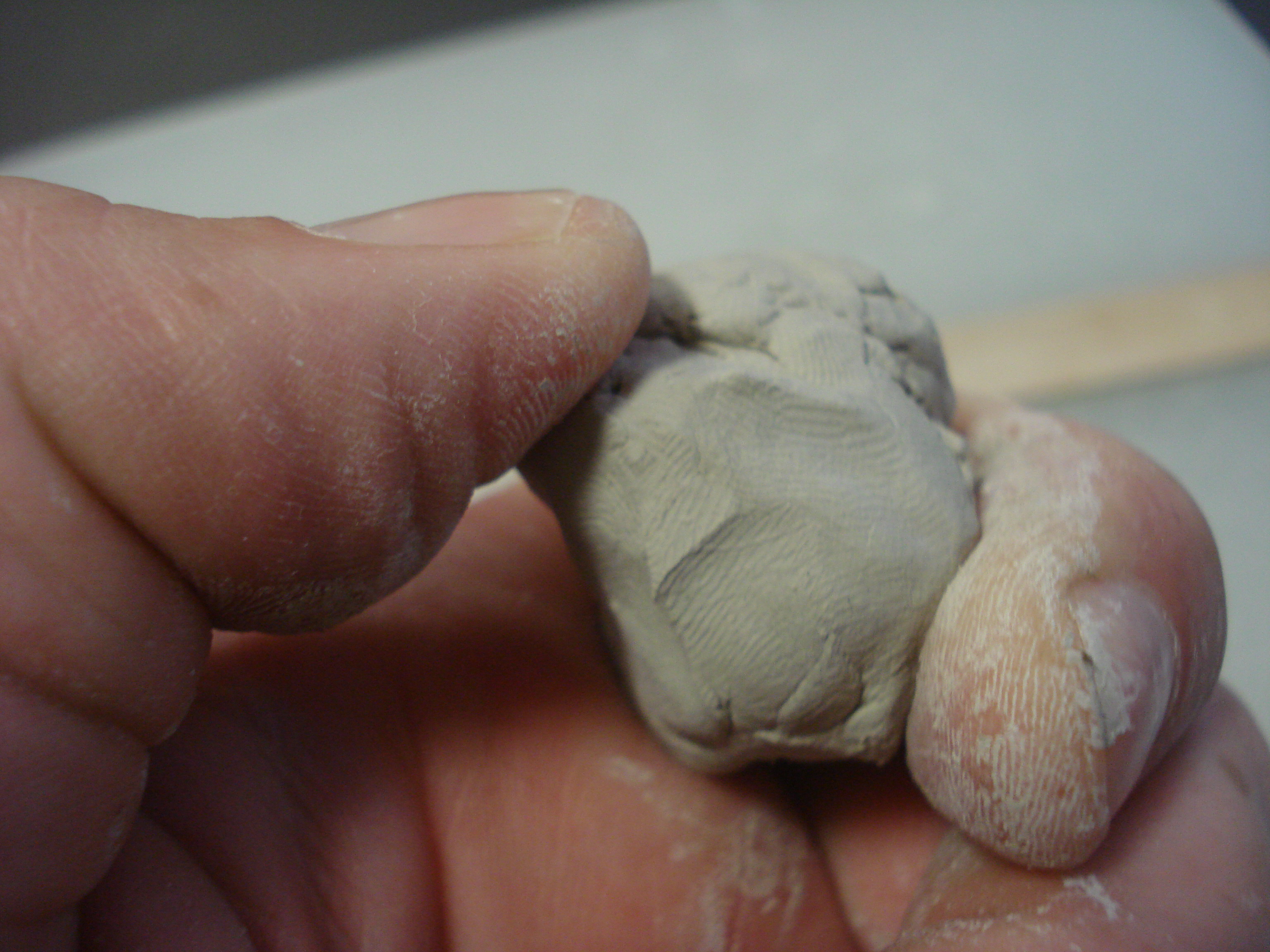 Sine you lower piece is harder than the piece your working with, since it has more time to air dry, you will be able to tell when to stop digging out clay (or you will hit your working surface…at which point, let it all dry, crumble it up and use at as rubble on your damaged building and start over….I did).
