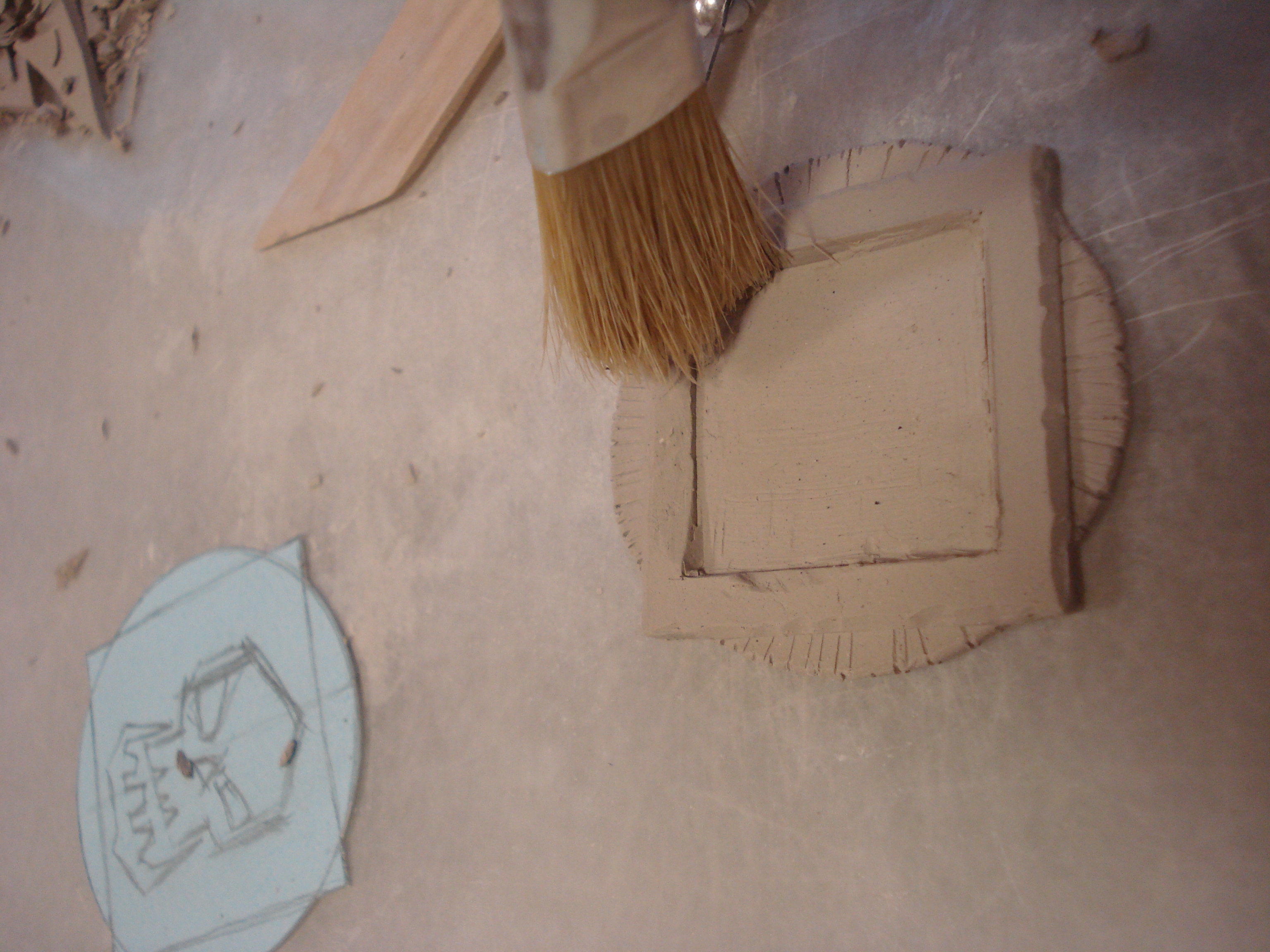 To join the two pieces, I coated them with a light coat of water on the sides that will touch, and pressed them together.