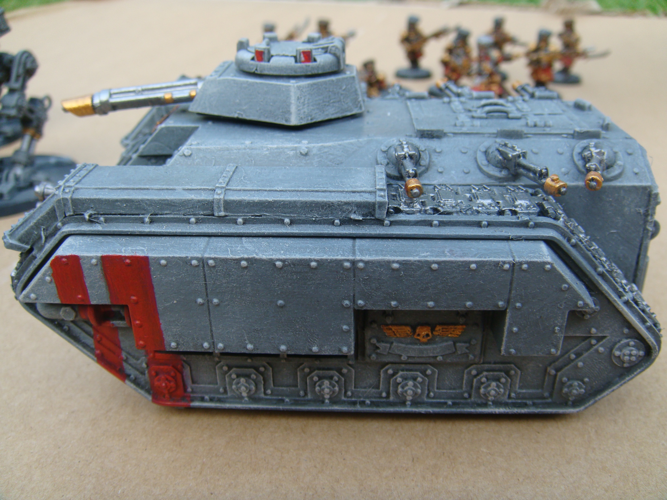 WOW! Thank you so much for this link, i think i will use these heads with the cadians to build up and bulk my force out a bit better! Do you think GS'ing would be needed to add extra Vostroyan detail? If so i better scrounge around on ebay for some, never used any before Automatically Appended Next Post: Infantry have been washed, and i feel they have come out quite well. The shining gold has been dulled down to a more realistic standard, as they would encounter lots of dust etc in a city scape environment. Second Chimera is around 75% finished, metalics need cleaning up, details added, stripes done, and i think i willleave the crew man for now, and maybe think of replacing his head with one of those winter pig iron heads? Also started work on a scout sentinel that was in the box, trying to come up with a dynamic pose for it, fun so far!