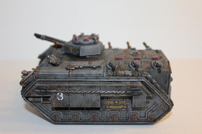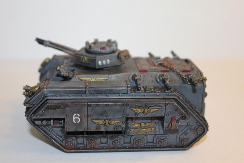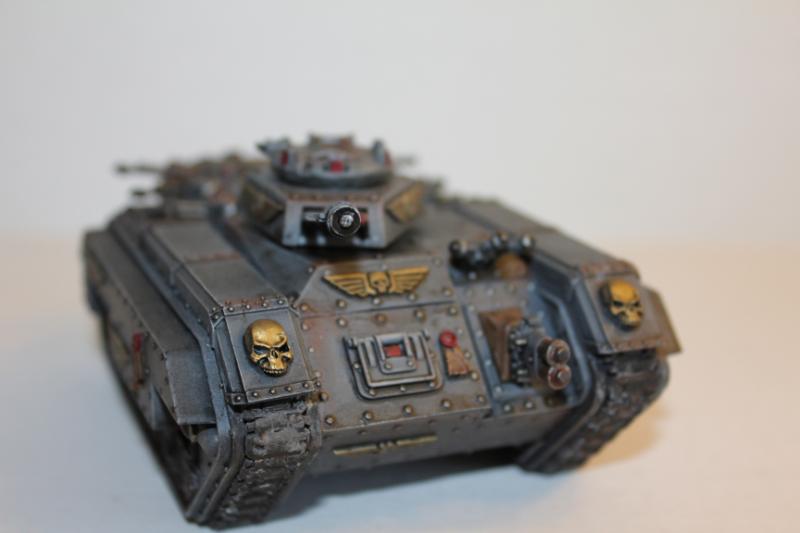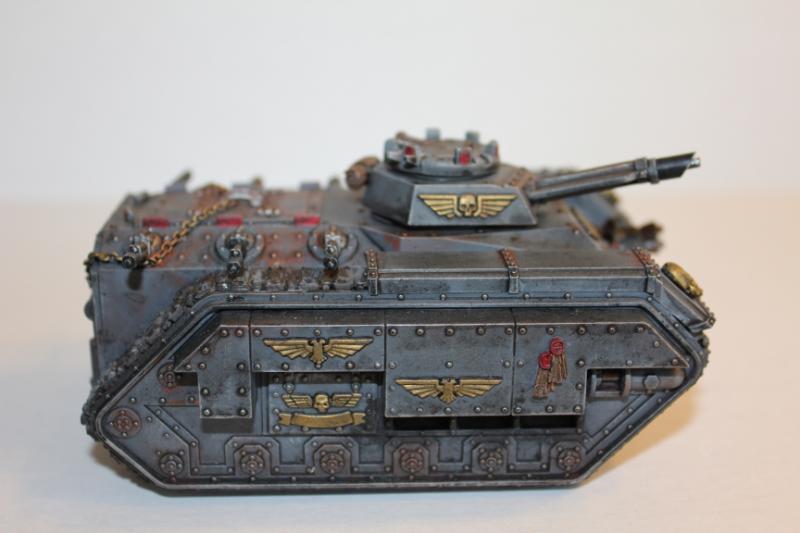 So this was kind of a fun Chimera, I built it for my Psyker Battle Squad, I figured their Chimera would have all kinds of Imperial Symbols and Purity Seals (I need to add more I think) and then I added the chain around the hatches, because really if they get possessed you don't want some daemon crazed psykers popping out of your Chimera.