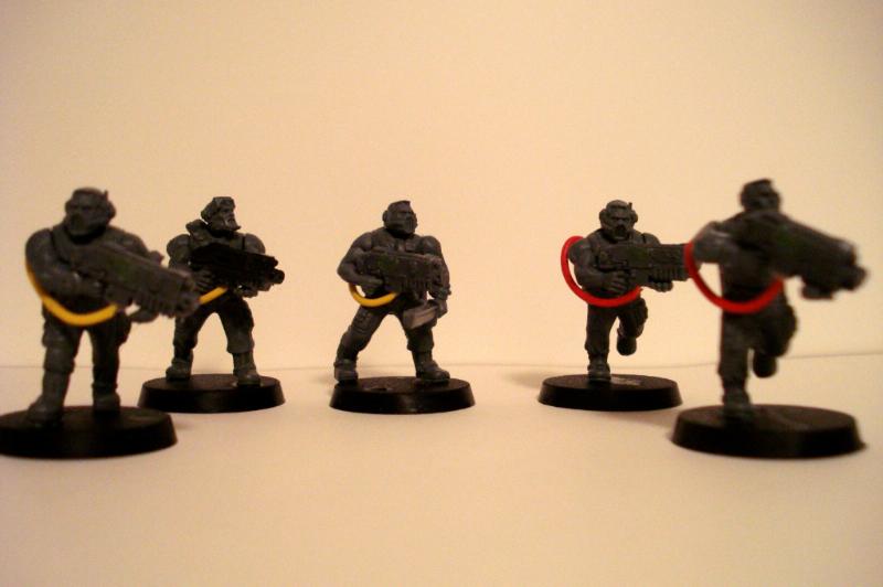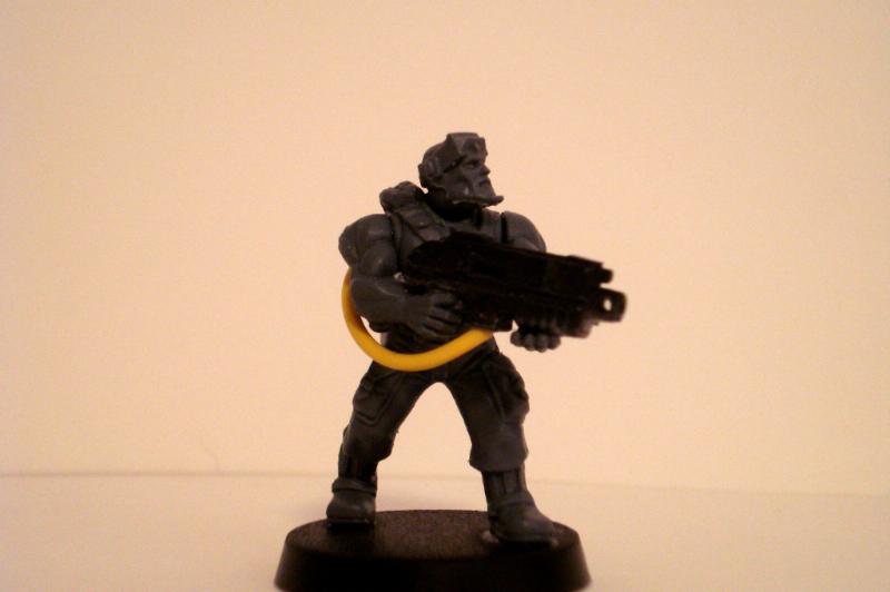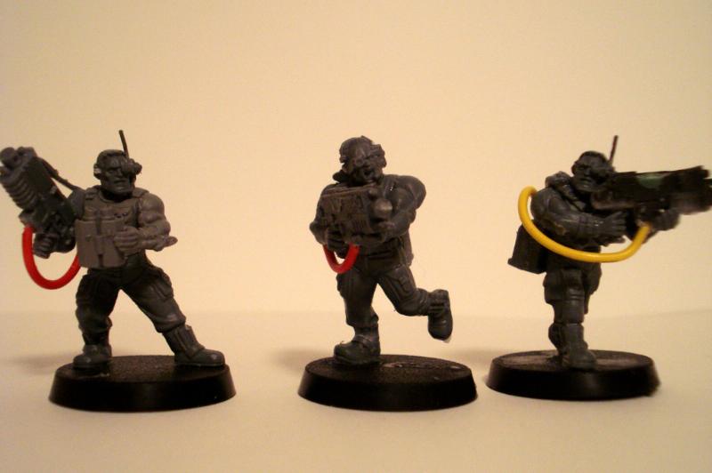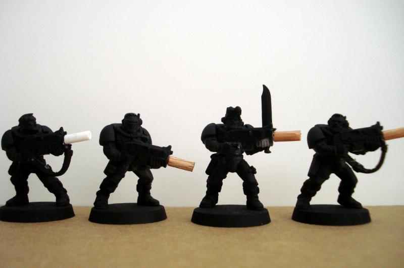 I probably will use the plastic tubing on the "scout" models, there will be a total of 30 of those models. I also have another squad, that will look like a stealth squad...black bodyglove style clothing, etc. Here is a mock up of them. This is an alternative to the other version of the compact hellgun idea.