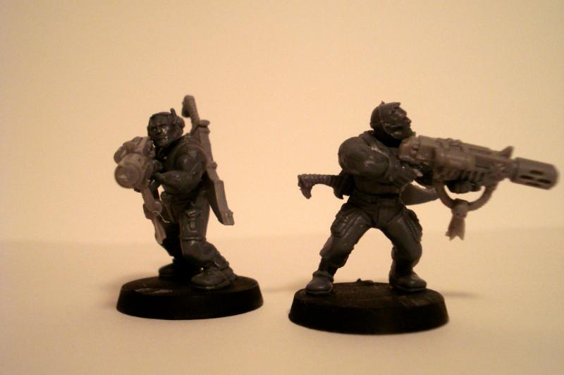 AG09 wrote:I think those stormtroopers look much better now! I'm not sure if the hoses need bands to hold them up (i.e. they will look ok without them), but if you have the time and are willing to do it, go for it! My only concern is that the weapons are still immediately identifiable as bolters, but I'm not certain how you could fix that... Perhaps, if you have access to loads of IG spares, the end pieces of lasguns that protrude from the body of the weapon (the muzzle and those two 'pipes') would make perfect substitutes for the boltgun's barrel and sight, and serve to further reinforce the notion that it's an energy weapon.