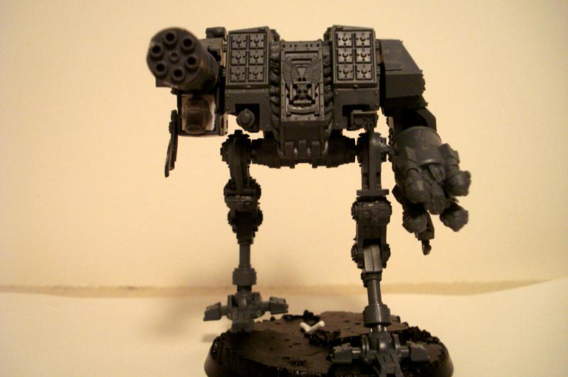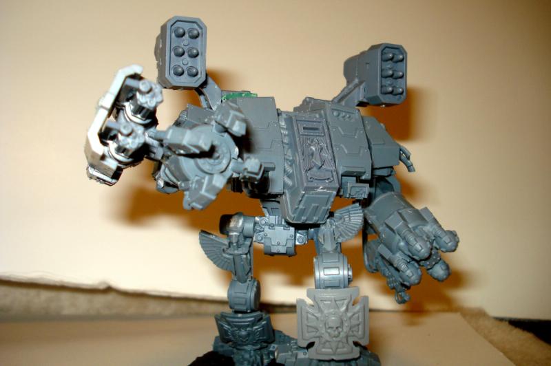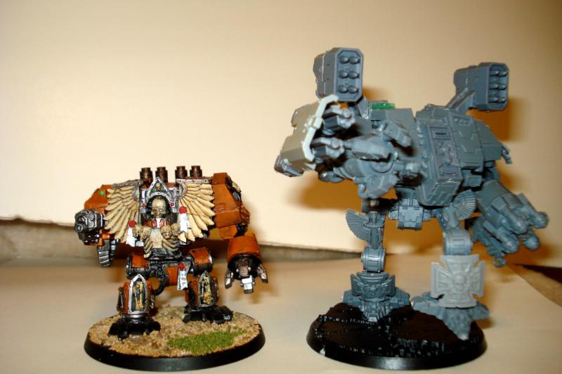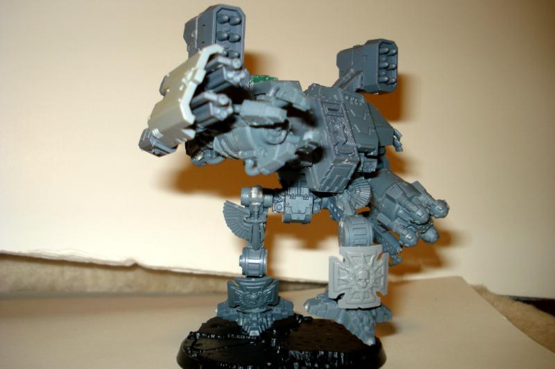 That is without doubt the best dred I have ever seen. The pose, the legs and the weapons mounts are all fantastic. Shown next to a normal dred, it seems at least one and a half times as high: this makes it undeniably cooler, but may lead to line of sight issues?
