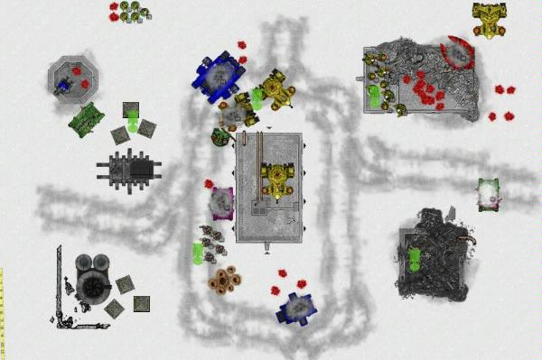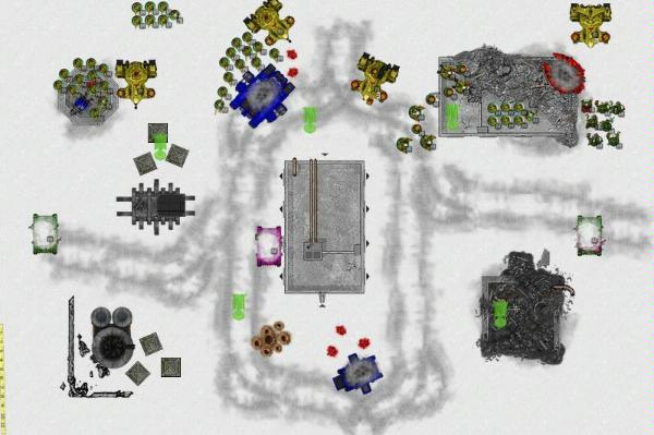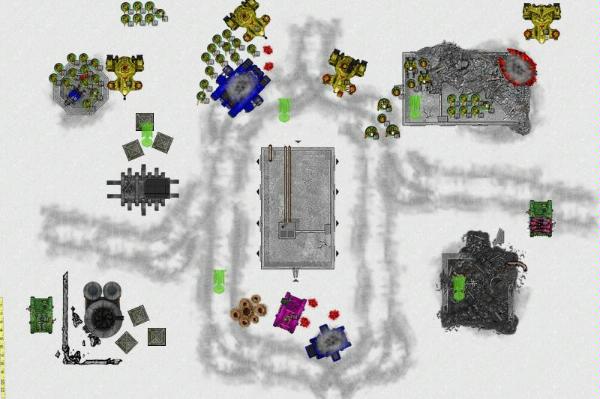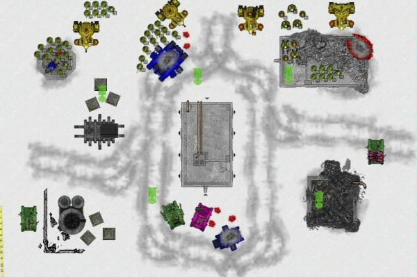 The Greater Daemon arrives, but Lessers don't. If the Greater gets put down with the Possessed, and they lose their Icon bearer, then having him in that position would be largerly worthless. Better to use him to clear the center objective, allowing Chaos to take the left side of the board. The Noise Marines fall back and fire their Blastmaster into the Pathfinders, killing two, but the Pathfinders pass their morale and pinning tests. The Greater Daemon assaults the Hammerhead, and the Possessed assault the Pathfinders. The Greater Daemon wrecks his target, and the Possessed run down theirs.