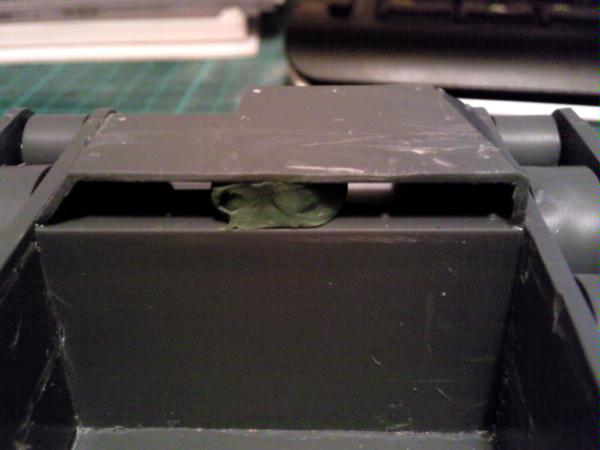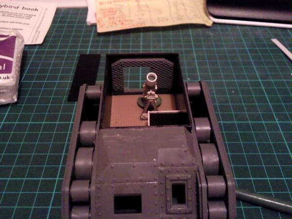 I then removed the cupola detail and the rivets and fixed it in place with a blob of green stuff to support the cab roof.