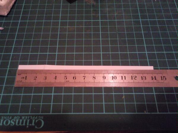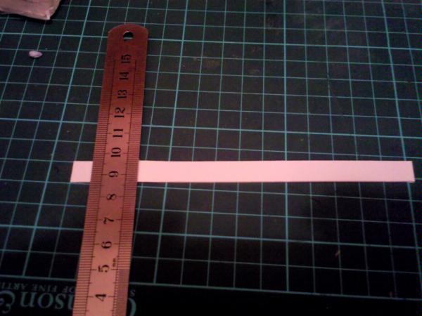 Next I scored across the strip at about 30mm from one end and scored again 1mm from that. I then gently bent the strip to break the rigidity of it.