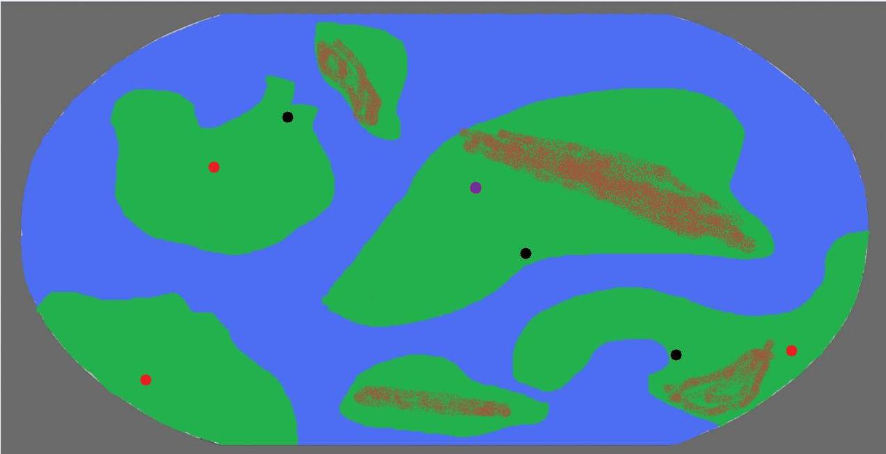 black spots- ports (the planet has a powerful navy/commercial fleet)