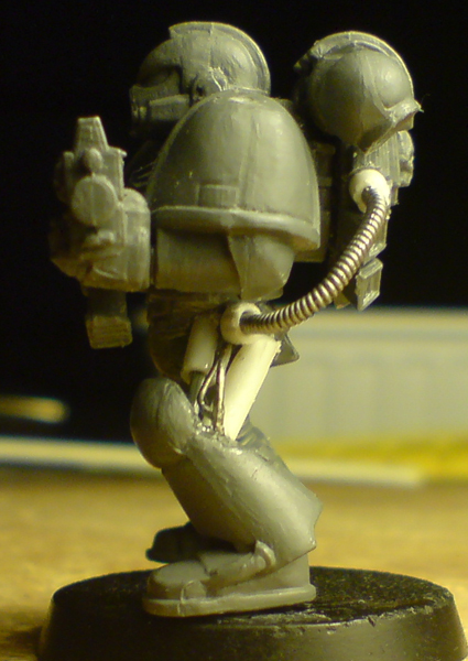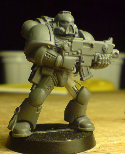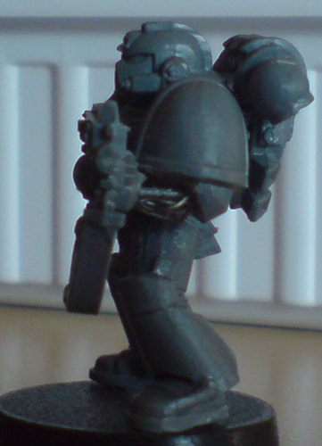 Here's my first modified marine, which I made this afternoon. I quite liked it to be honest until I saw the photos. I think taking pictures about your models can strongly affect your mood.  Not in this case though because I'm still kinda satisfied with it. I will still have to remove some mold lines though. Any suggestions are welcome!