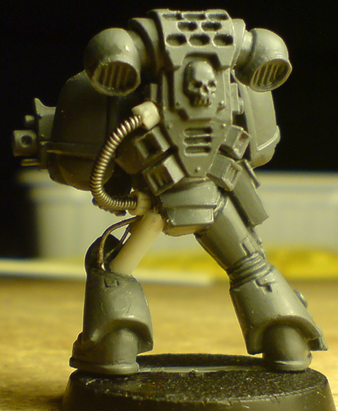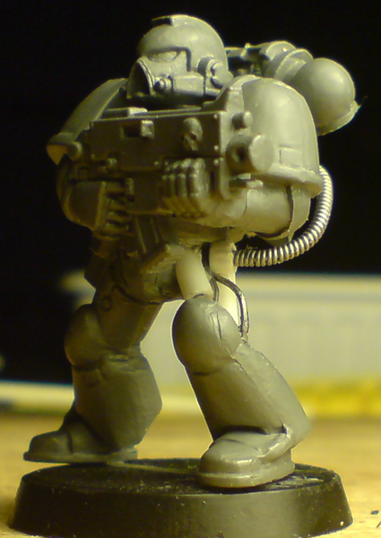 Hi, I like the conversion on the bog standard Marine & look forward to seeing it painted. I had an Iron Hands army ages ago and have a bit of a soft spot for the flesh replacing nutters. I'm working on some old MK 1's myself and still like the minis. If you feel like it you could strip them, although they look good enough for a re-paint to me. I look forward to your future posts