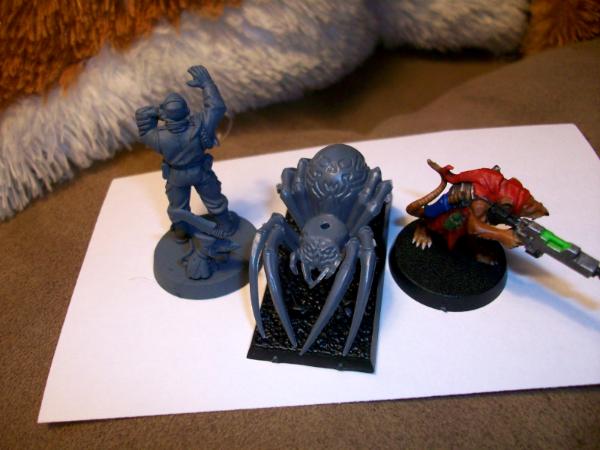 Took the wife out clothes shopping today...to say the least I got no painting done today. Going to get the master of ordnance done late tonight or tomorrow. Automatically Appended Next Post: I need your guys thoughts on something. I need to tone down the effectiveness of my army, so I've removed the Executioner Leman Russ. In its place I'm unsure of but I think I'm going to go for rough riders. My idea is to use the spiders from battle from skull pass. I have now close on how to make the skaven fit on them other than to use the tiny rats that come with the plague rats. Any other ideas on mounts that would work that come to mind? this pic has the spider mount that I would like to use, the P.O.W. and tiny ratman on the left and a clanrat on the right.