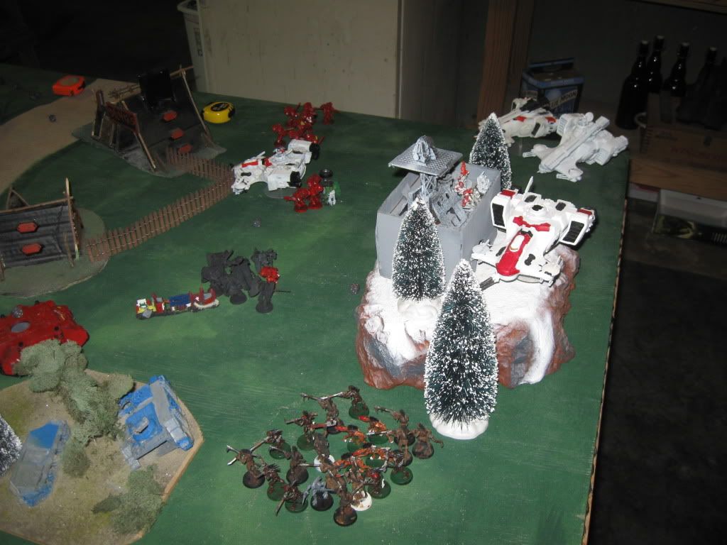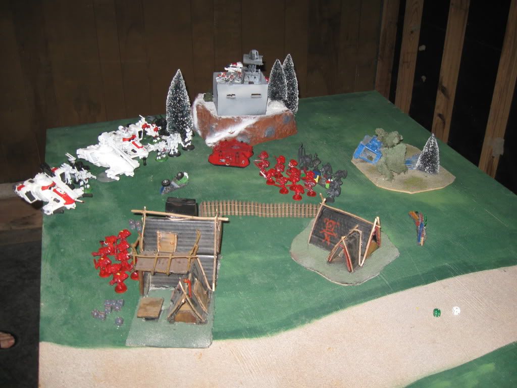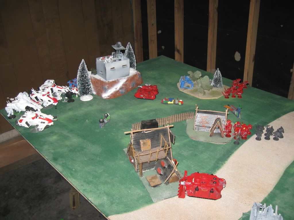 A different angle of the same placement. The Kroot...finally arriving to the battle. They were not in position to ambush the Rhino, thus securing victory.
