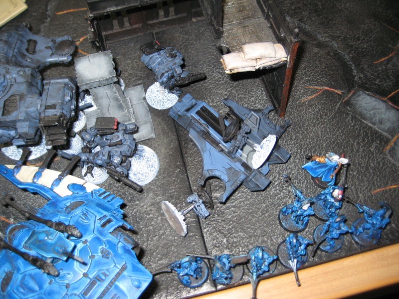 The *only* caveat would be if Eldrad and crew rolled * eyeballs picture* less than a 3 for assaulting in Difficult/Dangerous Terrain. ... Hmm. One wonders why the GDs aren't on their stands, smartly placed behind the fallen piranha making a DT roll even larger.