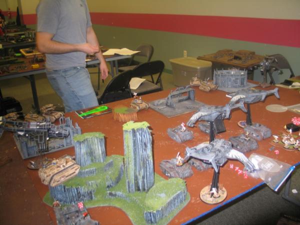 Andrew gets both his remaining Vendettas, the Company Command and the last Hydra in from reserves. One Vendetta comes in on each side and the Company command comes in the middle. Hydra arrives in the corner.