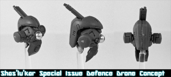 i like the way the drones look, the "beefyness" of them, really makes them stand out from the regualr gun drones or whatever. But, my only complaint about them is the Tau shoulder pad under it... It just kinda seems to be hanging there by a thread... Maybe you could put something behind it so that it is not hanging so losely?