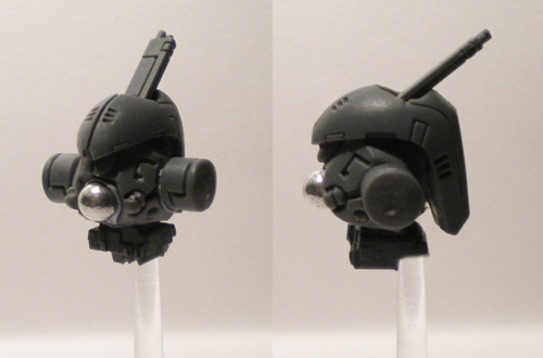 I have to say that I'm not happy with the shoulder pad on the defence drone; 1st because it looks too slapped on even if i was to add something behind it and 2nd I think the two round shapes (the sphere and icon) on the front when painted will look odd.