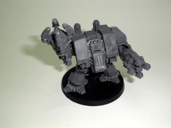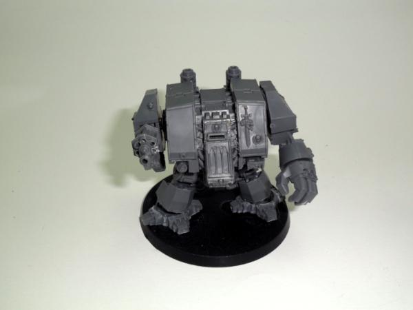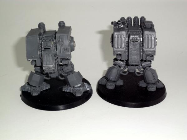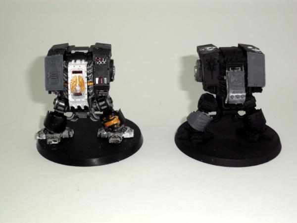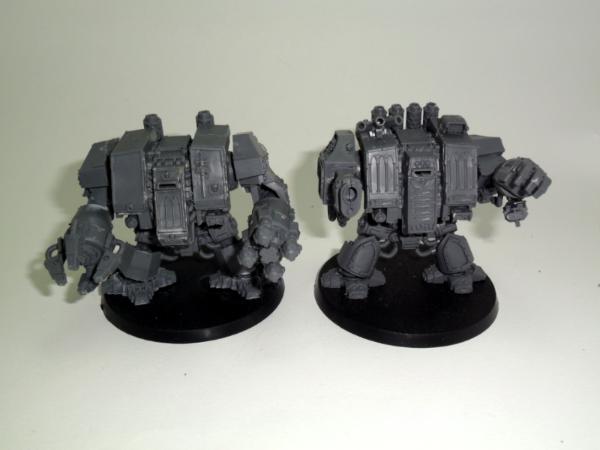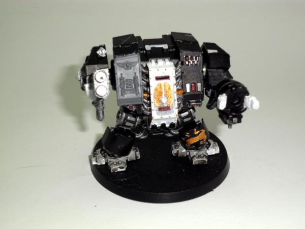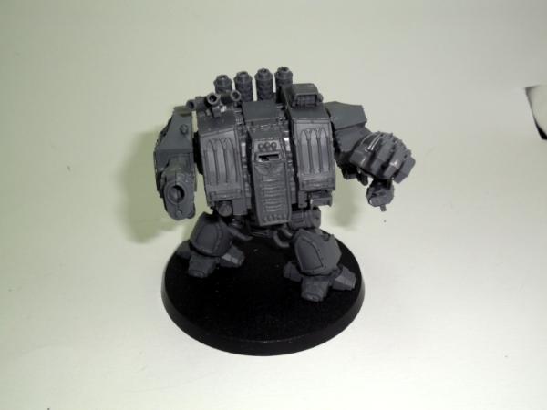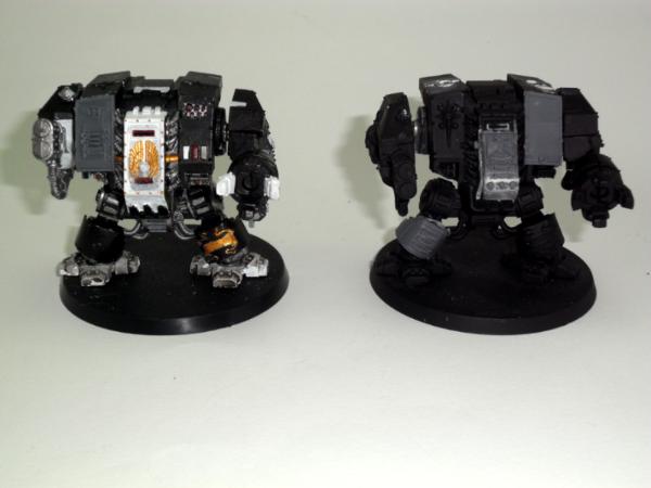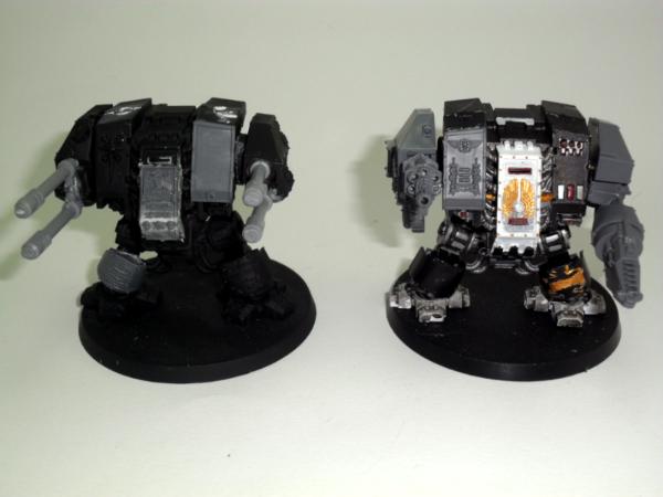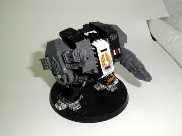 So yes, the Salamanders rescued this black and white dread from a destroyed chapter (read as sold as lot) as well as a wrecked LR (read as no weapons model needing TLC) which if I don't paint again, THAT may get onto the thread. I switched up some Venerable/Ironclad bits to enhance the plain janes and will later add some scrolls and other Salamander iconography to them all. But for now MAGNETS FOR THE WIN!
