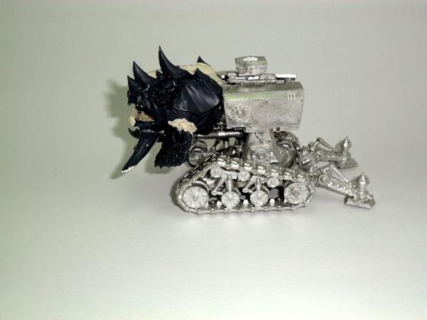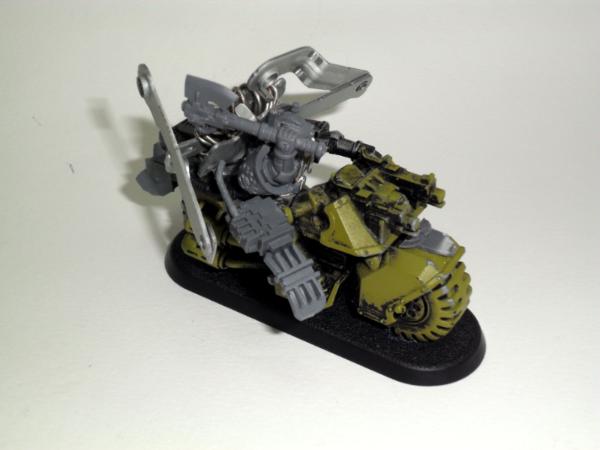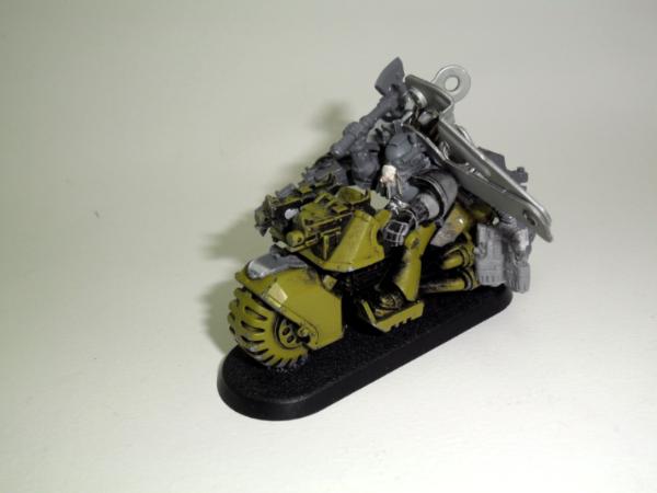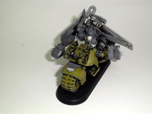That would be my WIP Master of the Forge on a bike. His upper body and arms are magnetized so I have the option to foot it and change his weapon load-out.