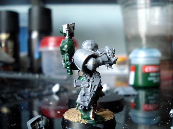 Did some work on the Sgt/Libby, Decided on Libby, Finished basecoating pretty much all of him, and washing him. Waiting to dry, then gonna go back and highlight, and post pics tomorrow. I'm contemplating giving him a Winged Jump Pack and having him run with the Vanguard vets. Meh, we shall see.