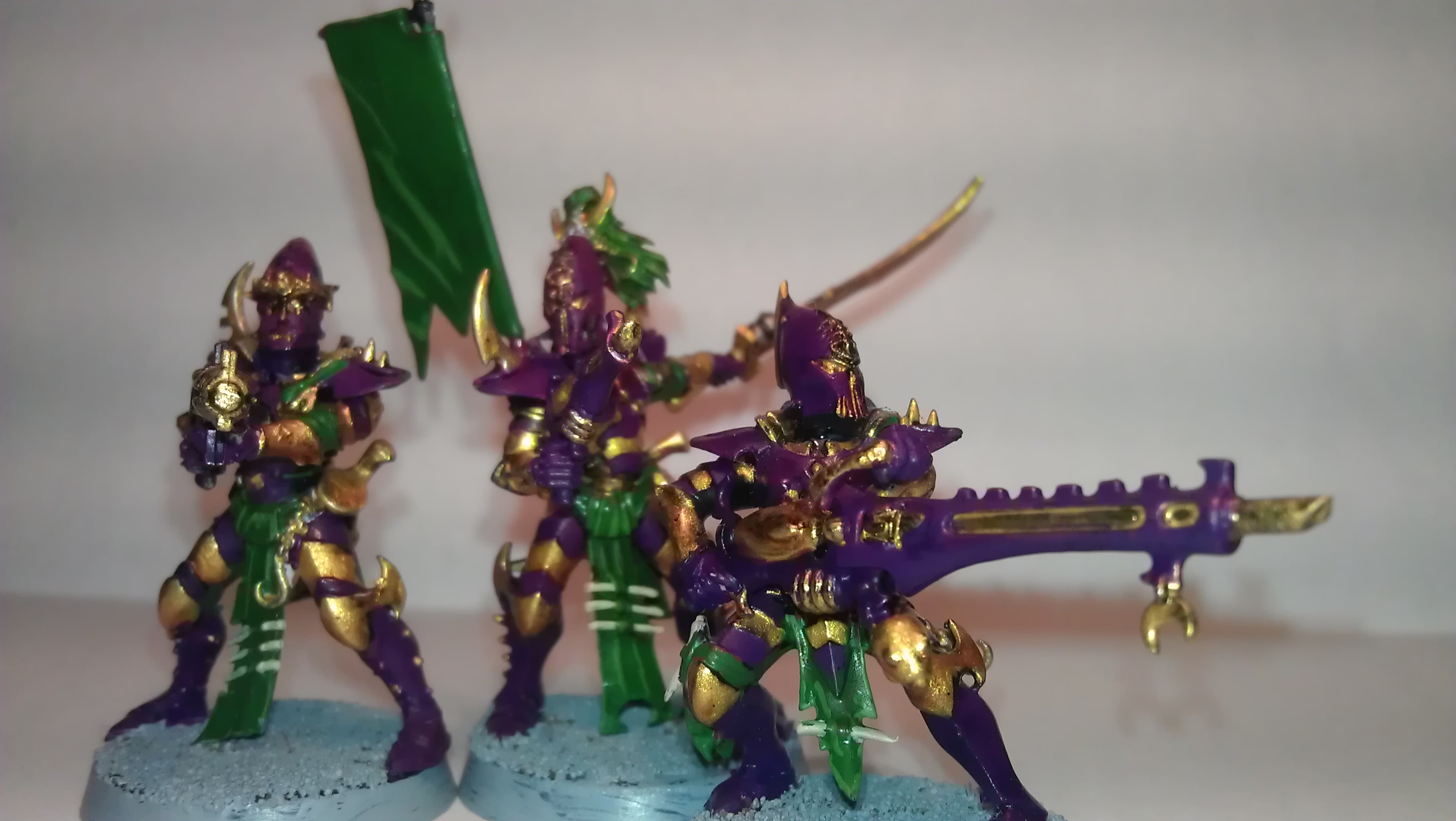 All pictures are work in progress, I haven't got a single miniature to a standard that I'm happy to call completed. I'm still experimenting with colour lay out for armour and clothing etc, I'm considering having the body suits in black, with armour panels in purple edged with gold.... like I say though, all'san experiment at the moment!