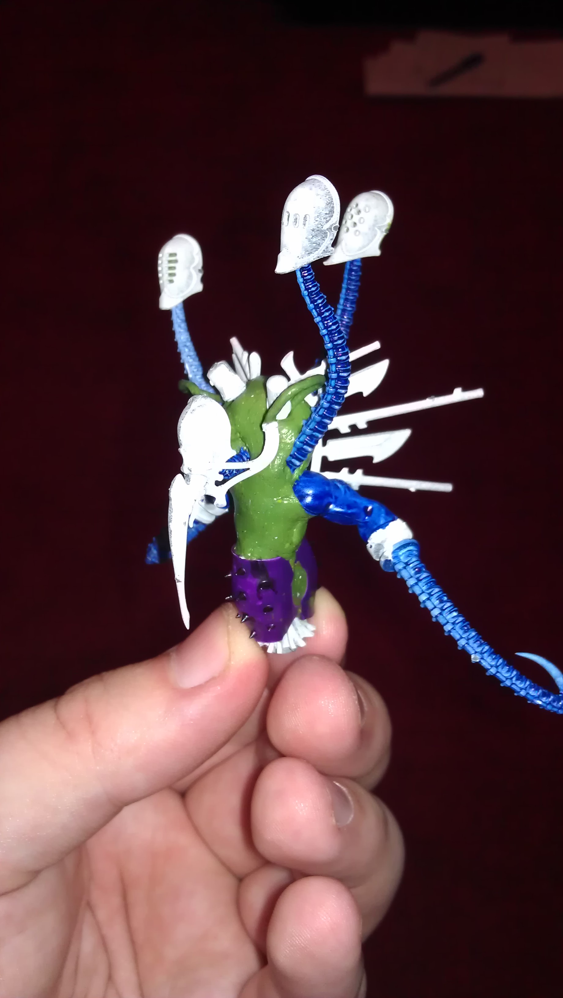 Been working on the talos this weekend, magnetised the weapons, painted off the sprue, then decided to see what I could do with the spare parts. I wanted to try and make a 4 armed cronos walker (need to order some wraithlord legs and a few other bits) with shield and sword, using the vortex as the shield, not sure about the sword yet, and lots of hydra style heads. It'll be a while before its complete, and will probably go through a few different variants.