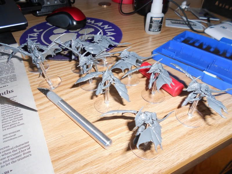 Sorry I have not checked your blog lately. I like the nids, they are coming along nicely! The mysetic spore is really nice. Your Hive tyrants Wings look very Natural! I also like the devourers! Im looking foward to seeing this army painted! Kinda cool your Girlfriend is making sure your modeling, but also making sure you keep up with your studying!  You should get her into modeling!