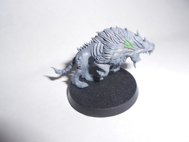 I finished up my Khymera moels for my Dark Eldar beast unit. I can't even remember what fantasy model this is, but the only work I did is green stuff by the ears to fill the antler holes.