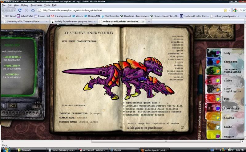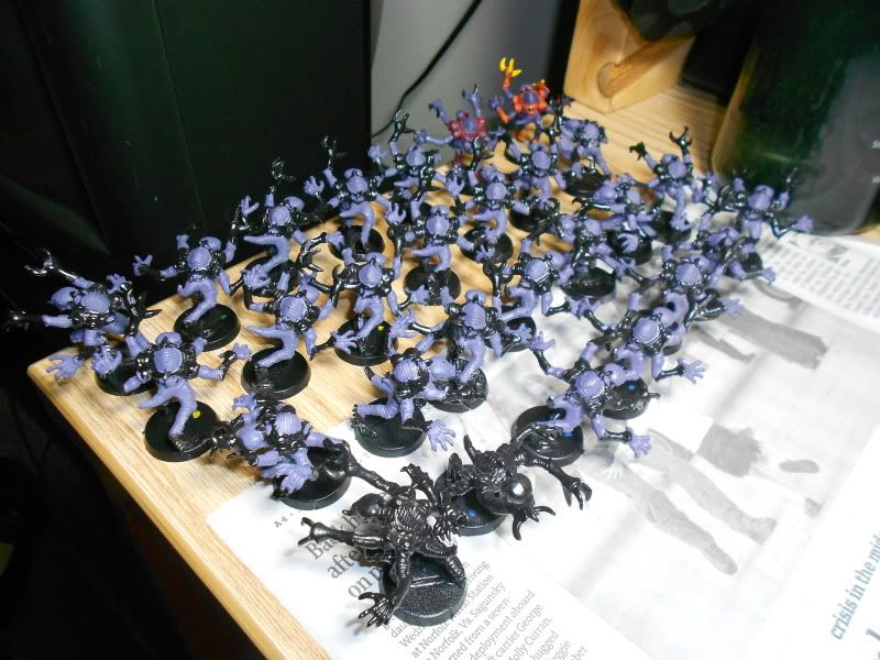 You would think after playing a 10 hour game a few days ago I would be burnt out, but I am really craving a battle. Next week when people get back to campus I am excited to be able to play, and with some painted models to boot! Being that I have never thrown down painted models (besides some DE vehicles), I am really pumped. My goal with Nids is to have them all done by mid February. Currently I am first first on the wait list for the Dark Star GT. At 60 players this will be about twice the size of my previous events and I want to be able to field a good looking army. Even if the unrealistic happens and I don't get in, it will still be nice to have something painted for local RTT.