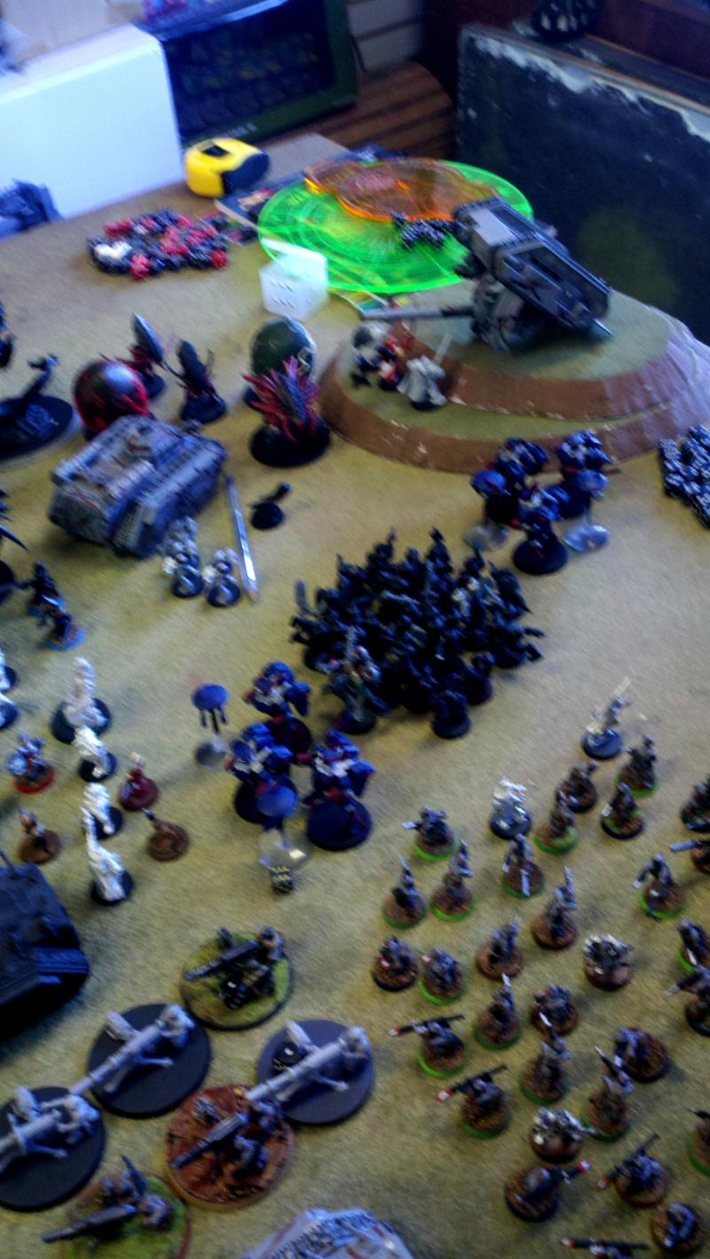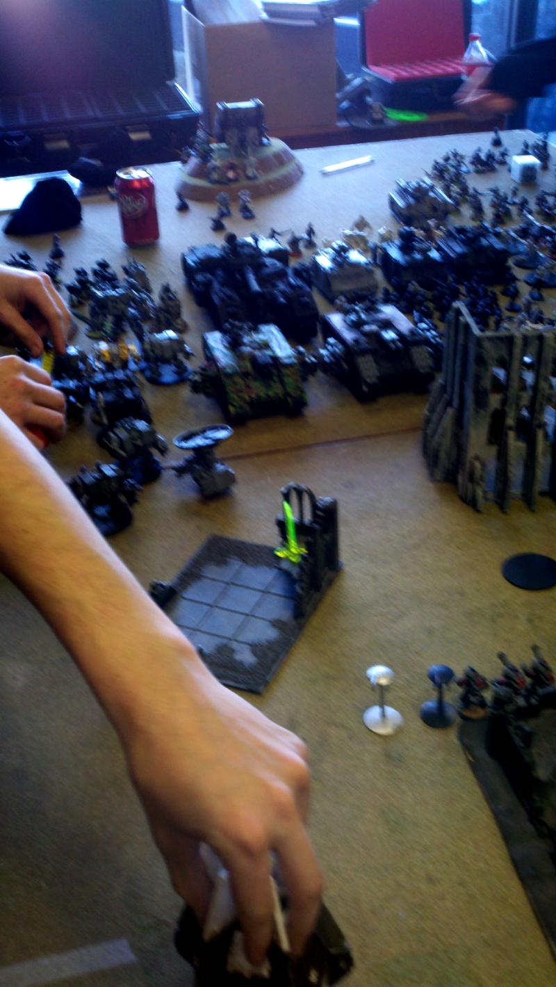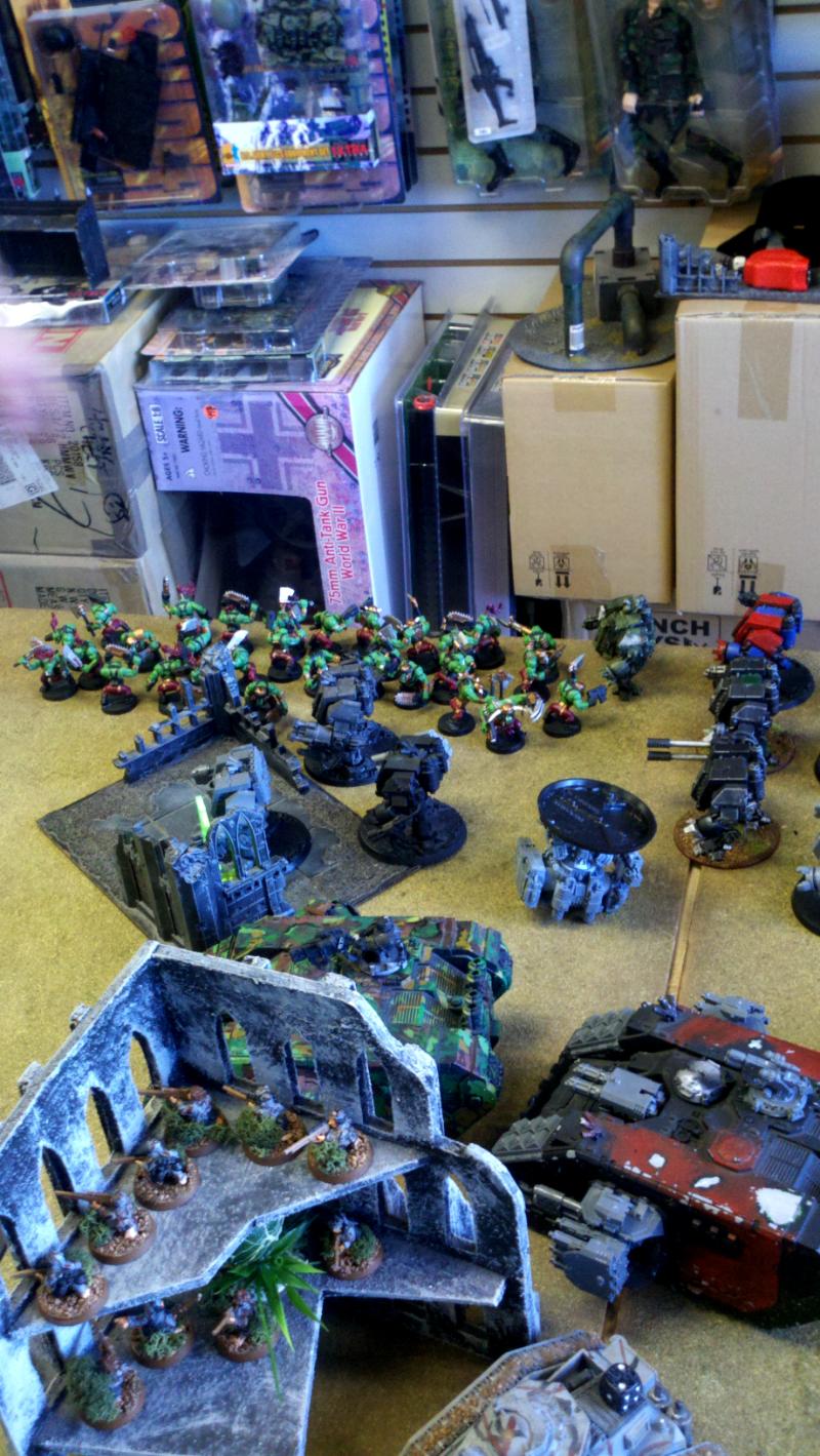 About a week ago we had the idea to have a 'big game' as our local store was closing. This past saturday, it all came together. What I had originally thought to be a simple (in some terms, anyway) 2v2 apocalypse match quickly turned into a 4v4, 18,000 points per side match. Averages at 4,500 points per person. Also, pictures were taken on my phone so sorry for the assuredly blurry shots.