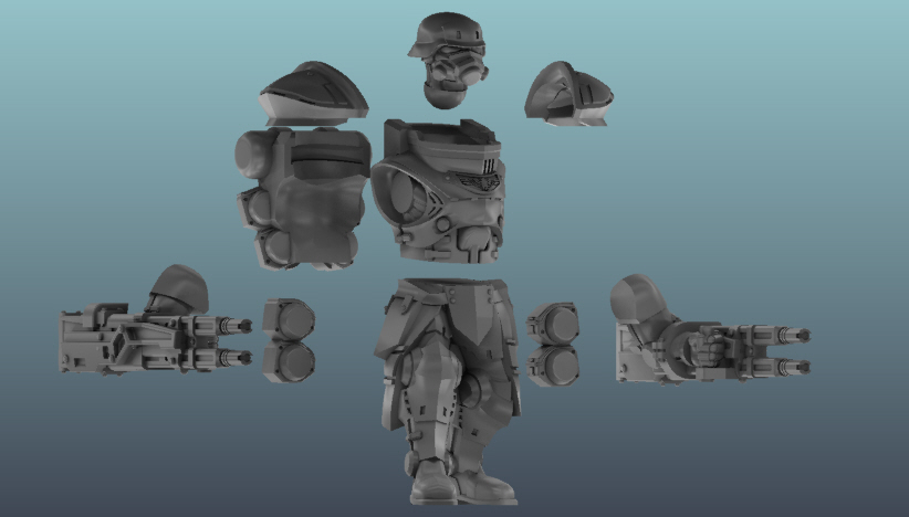 These are multi part models, heads, arms, legs and backpacks are seperate... and yes the cables and ammo feed are too