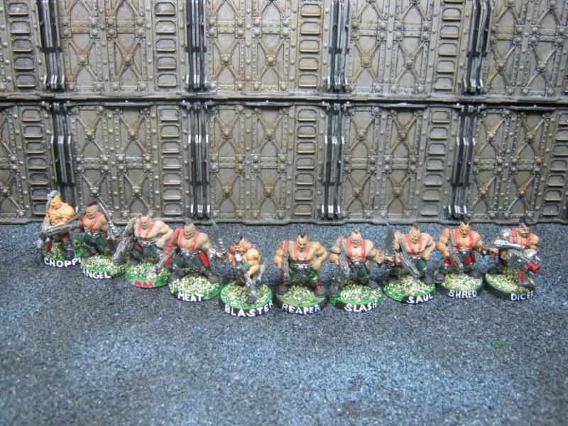 This next Goliath gang was a lot of fun to play. The concept was a bit ridiculous and completely unbalanaced, which is why I liked them so much. They saw a lot of play and were my #1 gang for a while. I didn't put a lot of work into them paint-wise, I managed the '3 color' rule and spent more time playing them instead of painting them. Some are pretty decent, but most are slapped together.