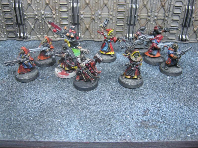 The paint on the Redemptionists isn't bad so I may just do some cleanup work. The Ratskins have a decent start w/ basing but need a lot of love. The Spyrers need to be purged with Mr. Clean.