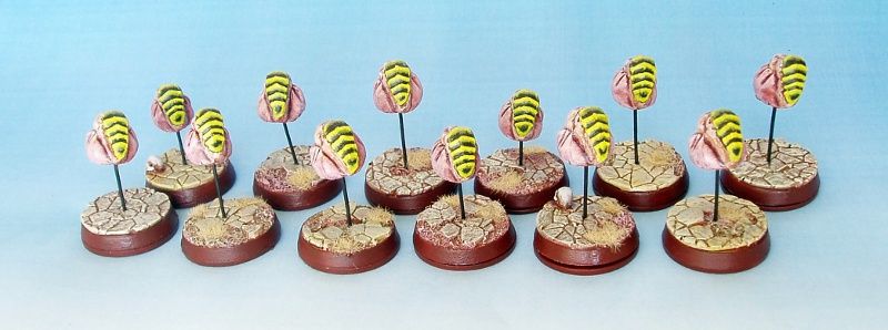 As promised, here are my two finished mycetic spores. I am going to imagine that they come out from under the ground in stead of from the air.