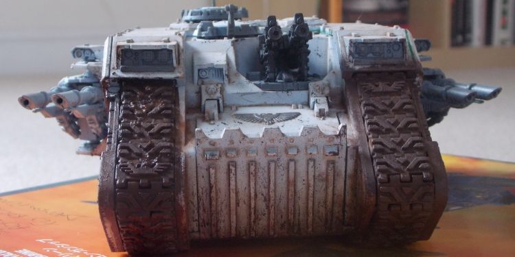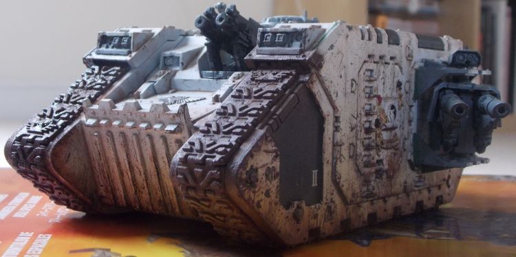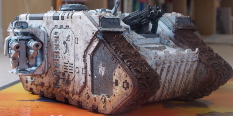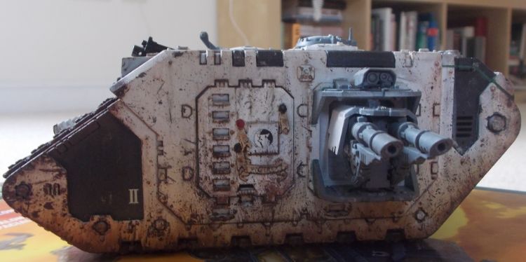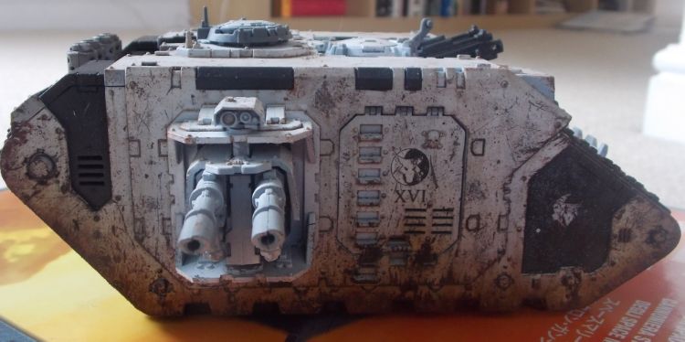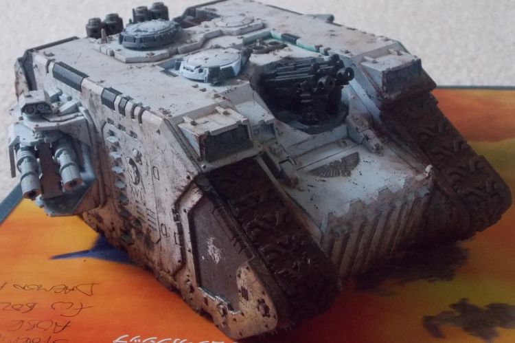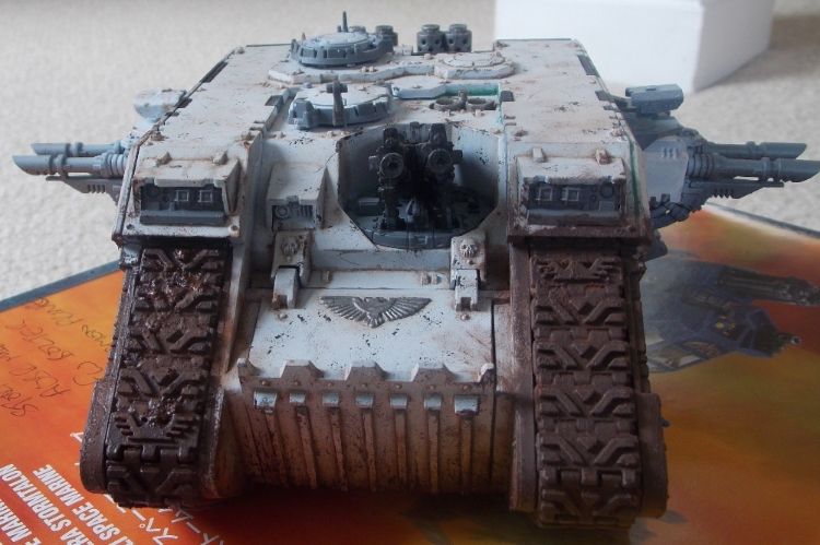 This is the first of what is probably going to be an unhealthy fleet of tanks. As you'll see from the pictures there's still a hell of a lot of work to go, the sponsons, heavy bolters and the tracks need some more work as well as the roof and exhausts.