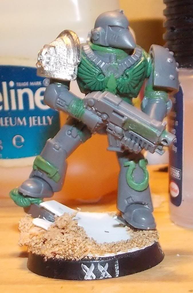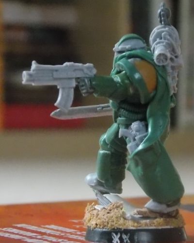 This is my Tactical Squad Sergeant coming along quite nicely now I think. The cape needs some touching up, though for a first go I'm pretty happy with it, a right pain in the...though!