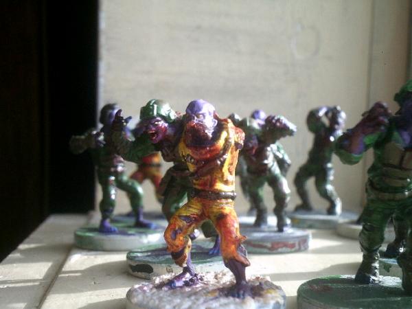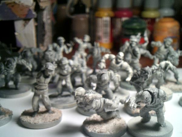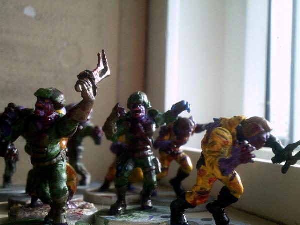 A couple of mostly done zeds, and a squad of Dorfs, also mostly finished.