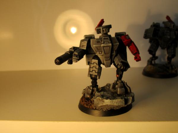 Looks good! I do have some questions though. I don't know if it is a continuing evolving paint scheme or the lighting but did the models paint scheme change from grey to blue tinted back to grey throughout the thread? Also, did you have to buy the cracked stone bases or do they come with the new plastic broadside kits ala the wraithlord?