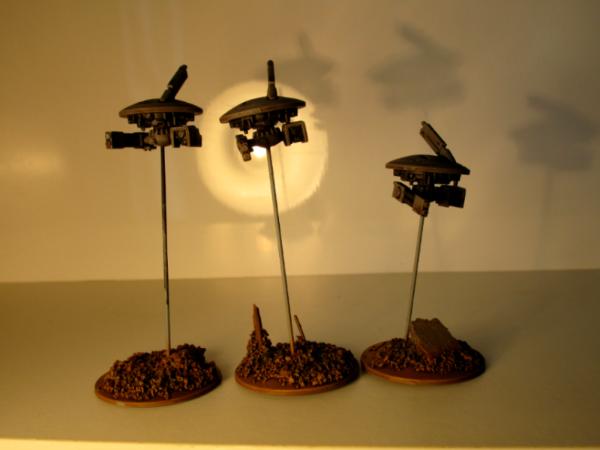 Here are the team's marker drones - still a wip but you can see that I've tried to create a more floaty, supporty kind of look by using 1mm aluminium rod to atach them to the bases. The same will be done with my gun drones which I'll no doubt display later.