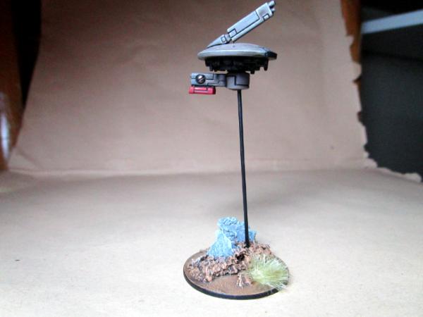 The gun mount is made from a XV8 Burst Cannon ammo cylinder and I've just stripped down one of the drone carbines and attached it to the front. Aluminium rod provides a more dynamic range of height and angle for basing - I like to imagine these little buggers zipping about the place and making a nuisance of themselves.