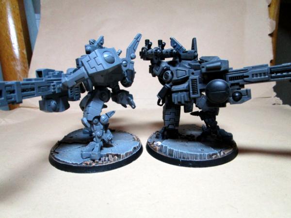 Totally agree with the Crisis Suits. They're nightmarishly bad. Like what you've done with the legs. Modifying the arms is a bit of a hassle too. Couldn't really tell if you'd tried much of that. Hadn't seen the hand tutorial. I kinda like that idea as opposed to using Grey Knight Terminator fists which have 4 fingers instead of three.