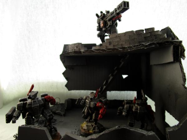 "Supported by a Crisis Team, an XV88 Broadside languishes in the ruins of Cardboardia Prime, yesterday":