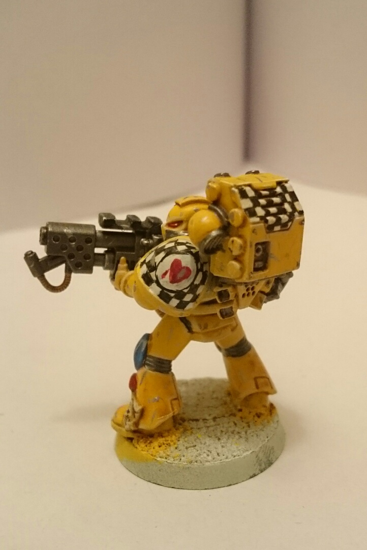 Love the tactical squad. I'd encourage you to redo the checks on the assault squad, as they seem to have grown compared to the tac squad. Lovely yellow.