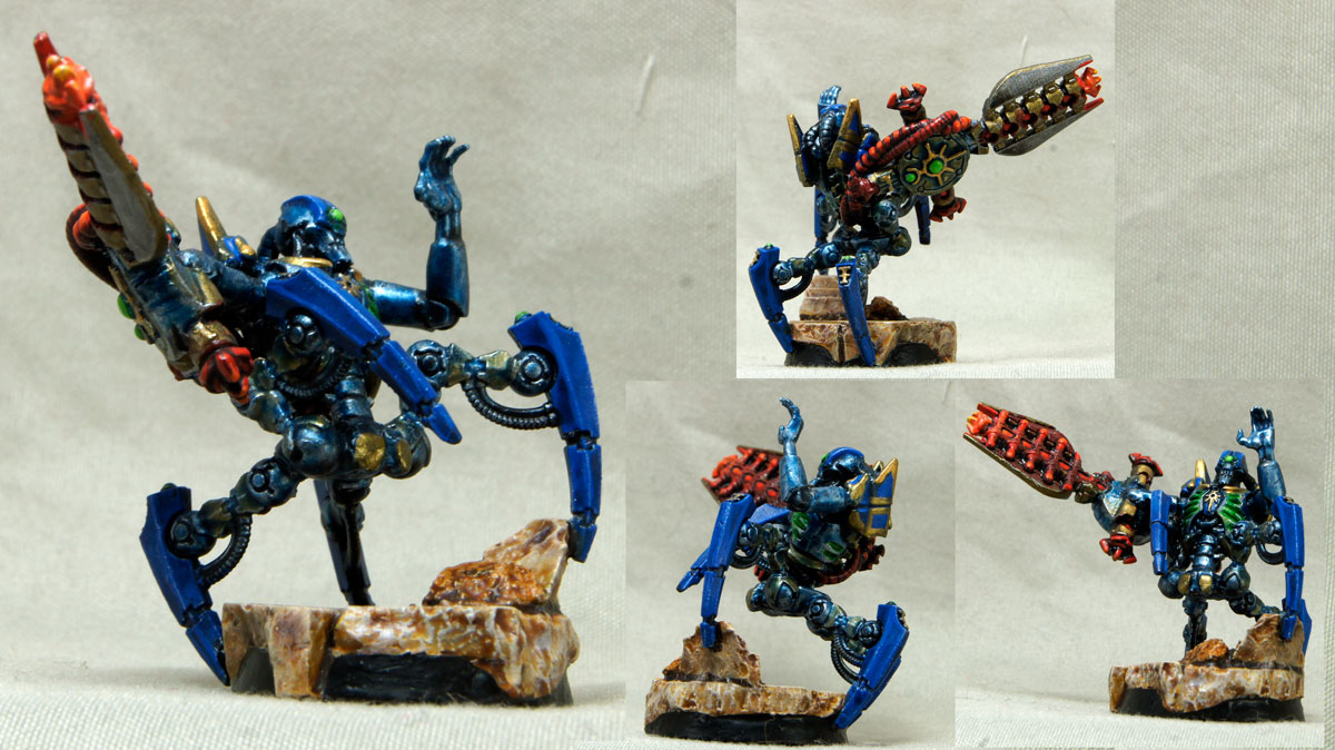 I have to say, I'm pretty happy with the results. I still need to apply dullcoat and then hit the gems and spheres with shiny varnish, but it looks pretty bad-ass and has already got a fame for ionflicting major pain to my opponents!