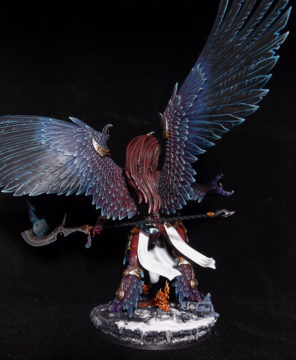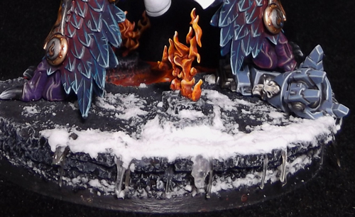 Wonderful painting (those wings!), beautifully photographed. I really, really like the juxtaposition of the snow and the lava on the base. Nice chaosy touch!