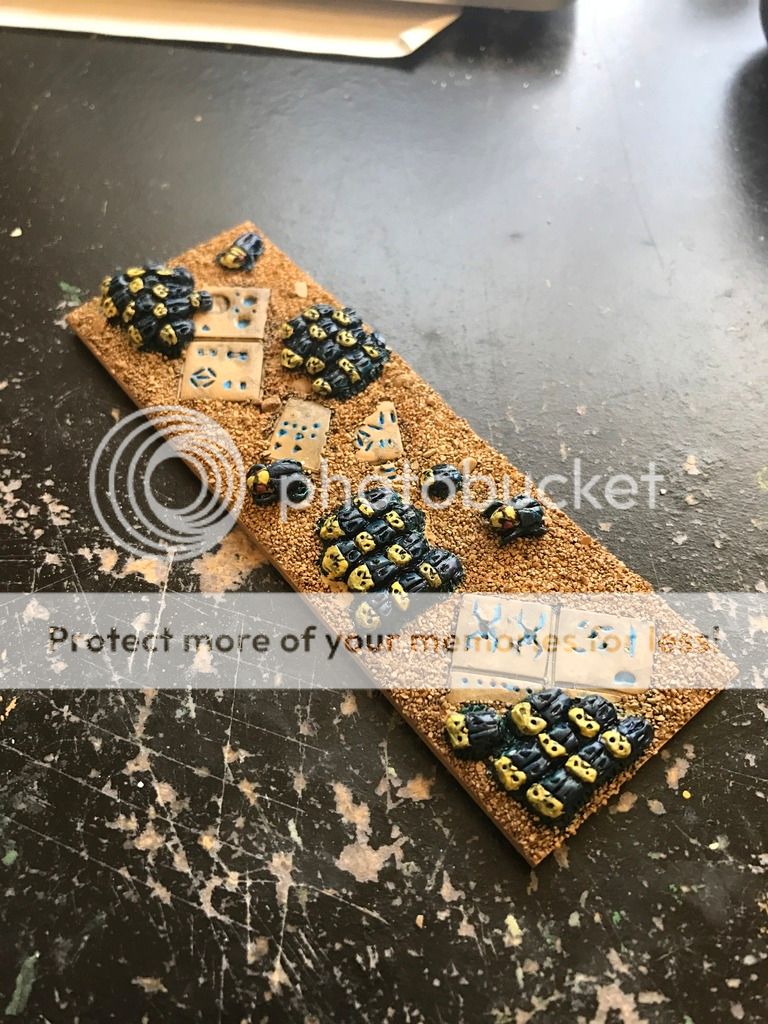@ Amazingturtles: I like them too! Whenever there is little unit markers I try to make matching ones to an army theme. For my Abyssals I used little Cut up tentacles for wavered/disordered markers. they are easy to make so I may work on more. For the Scarab swarms I have done some more greenstuff work so they "meld" into the base better. I eliminated blank space and sculpted extra legs. I have half of the scarabs left to go.