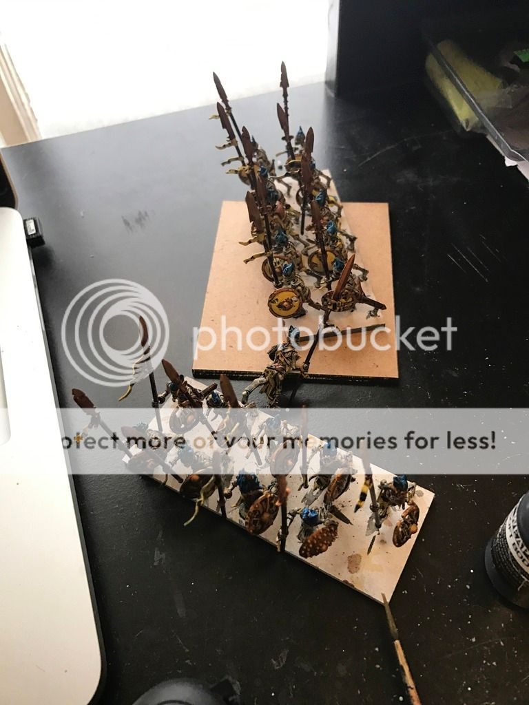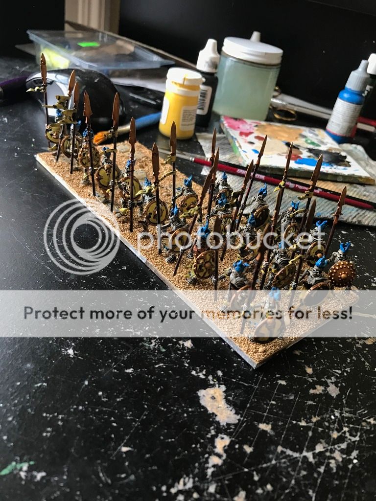 Really got into the groove during the snow storm. I completed the second regiment of skeleton spearmen.