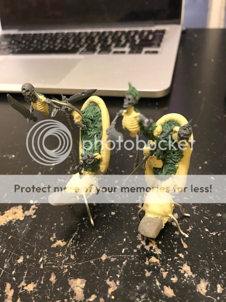 Finally a bit of work on these things, I don't know what I am going to do with them but I figure they could be in there somewhere. The greenstuff is supposed to represent very rough Mummy Wrapping.